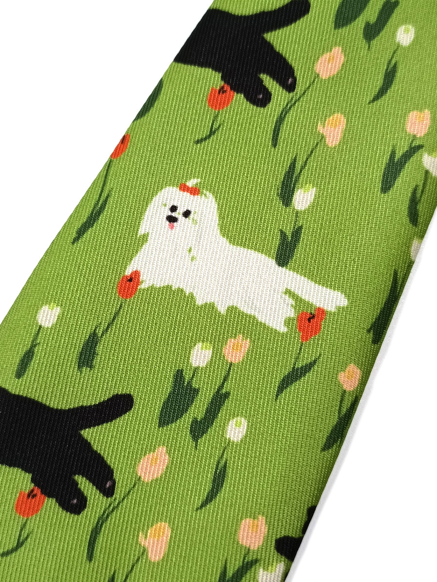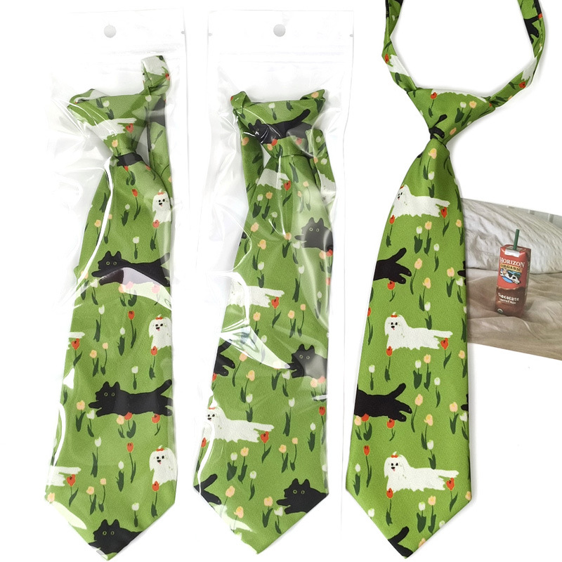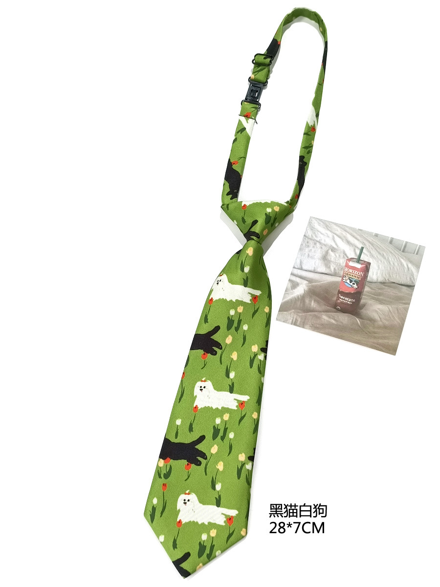 | nameOriginal | Bright Green Black Cat White Dog Tie Women's Free-Hit Cute Mid-Length 28cm Children's Student Creative Polyester Fabric Matte |