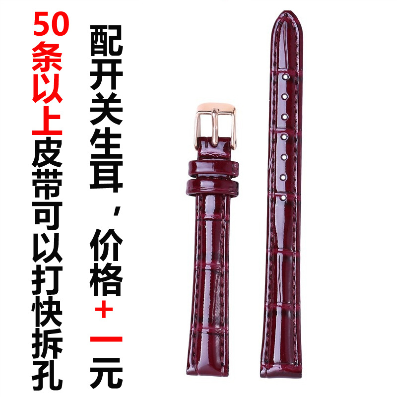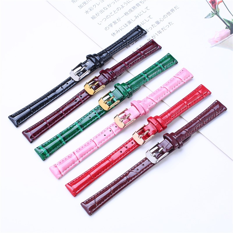 Bright Leather Patent Leather Strap Bright Bamboo Leather Strap Pin Buckle wine red Green Purple Watch Accessories 10-20mm