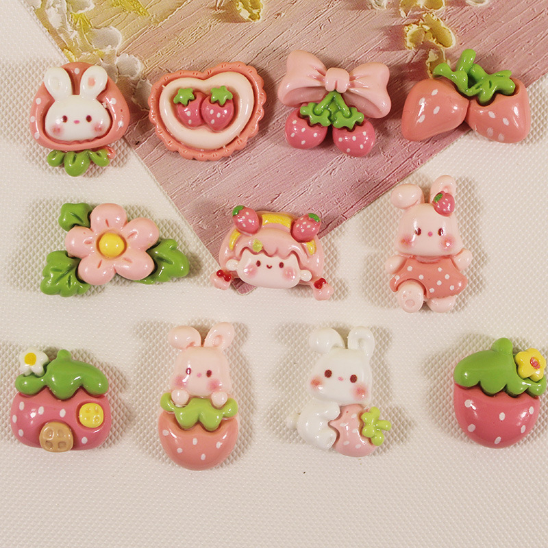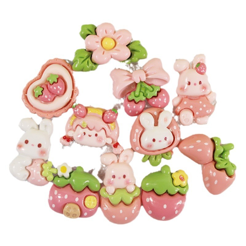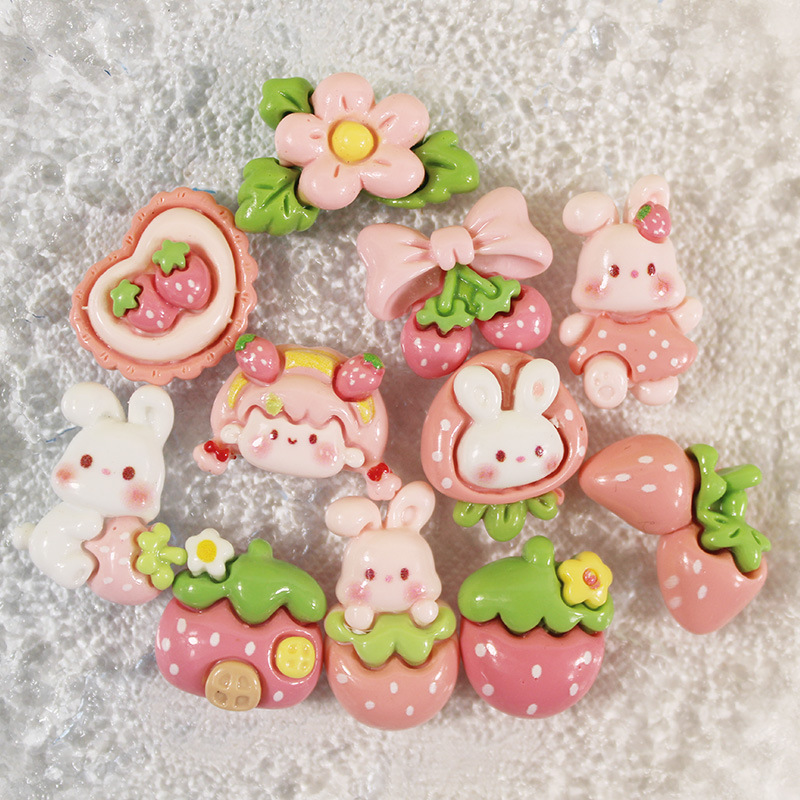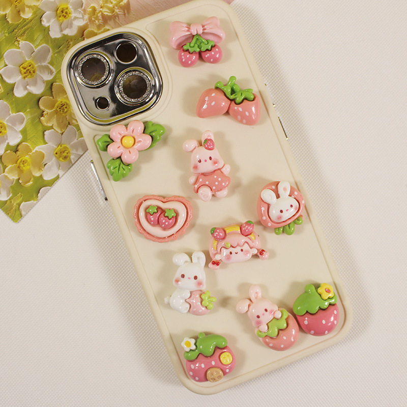 | nameOriginal | Bright Strawberry Girl Rabbit DIY Cream Gel Mobile Phone Case Simulation Resin Accessories Handmade Hairpin Water Cup Material |