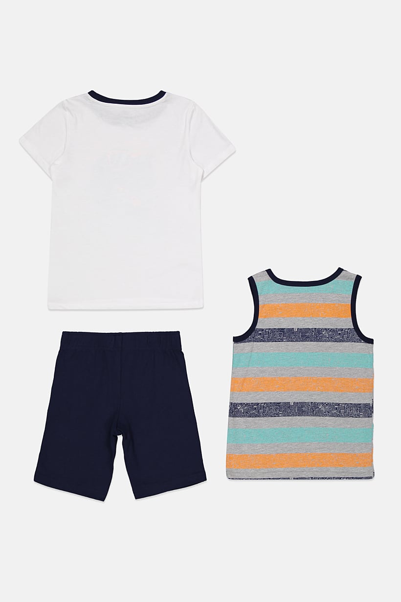 Bright White Graphic Print T-shirt and Short Set for Boys (3 Pieces)