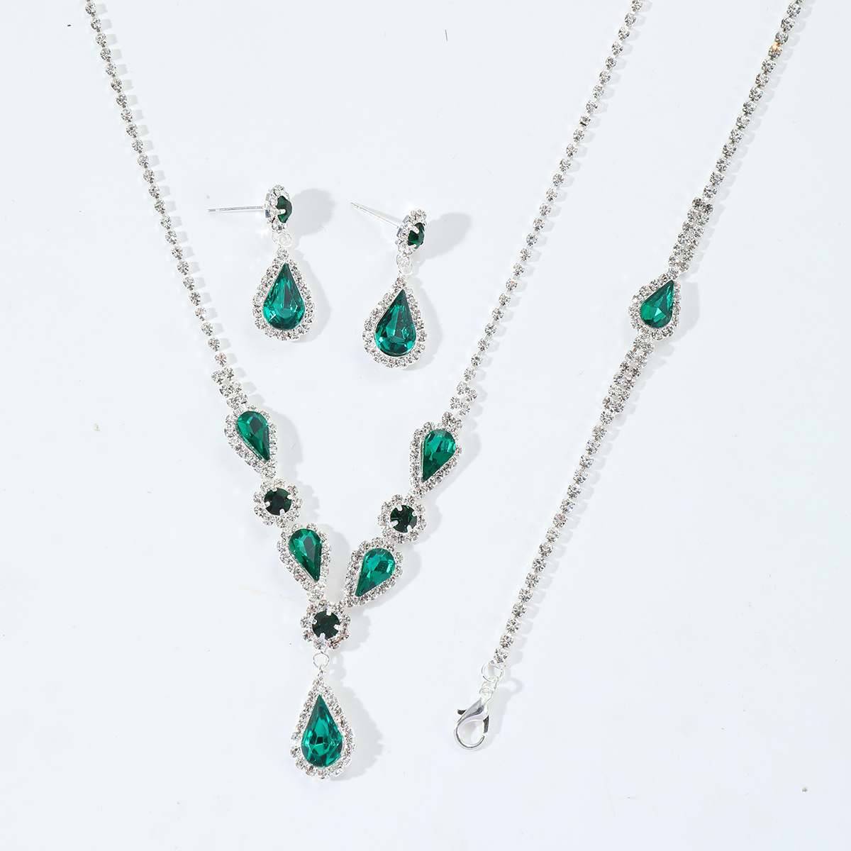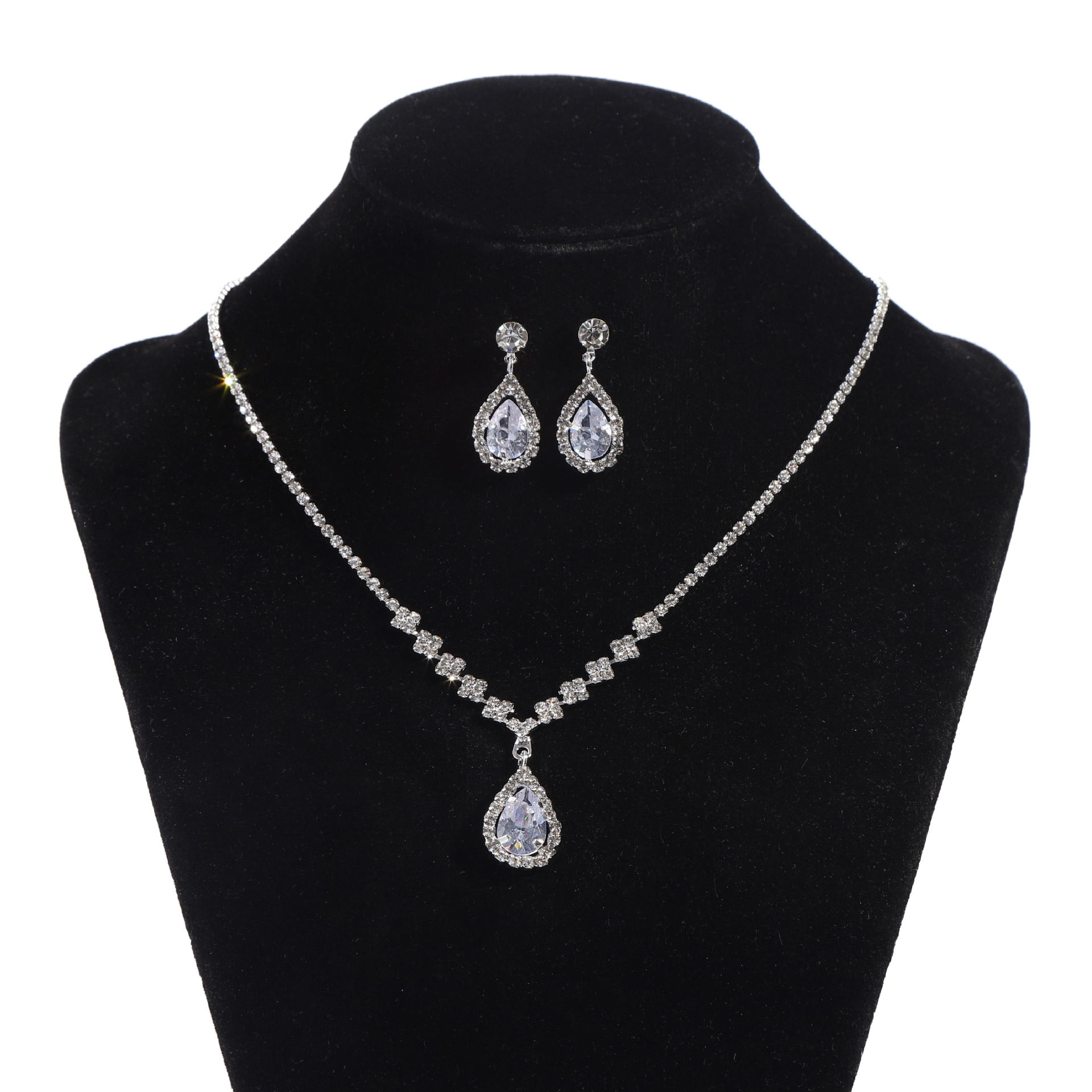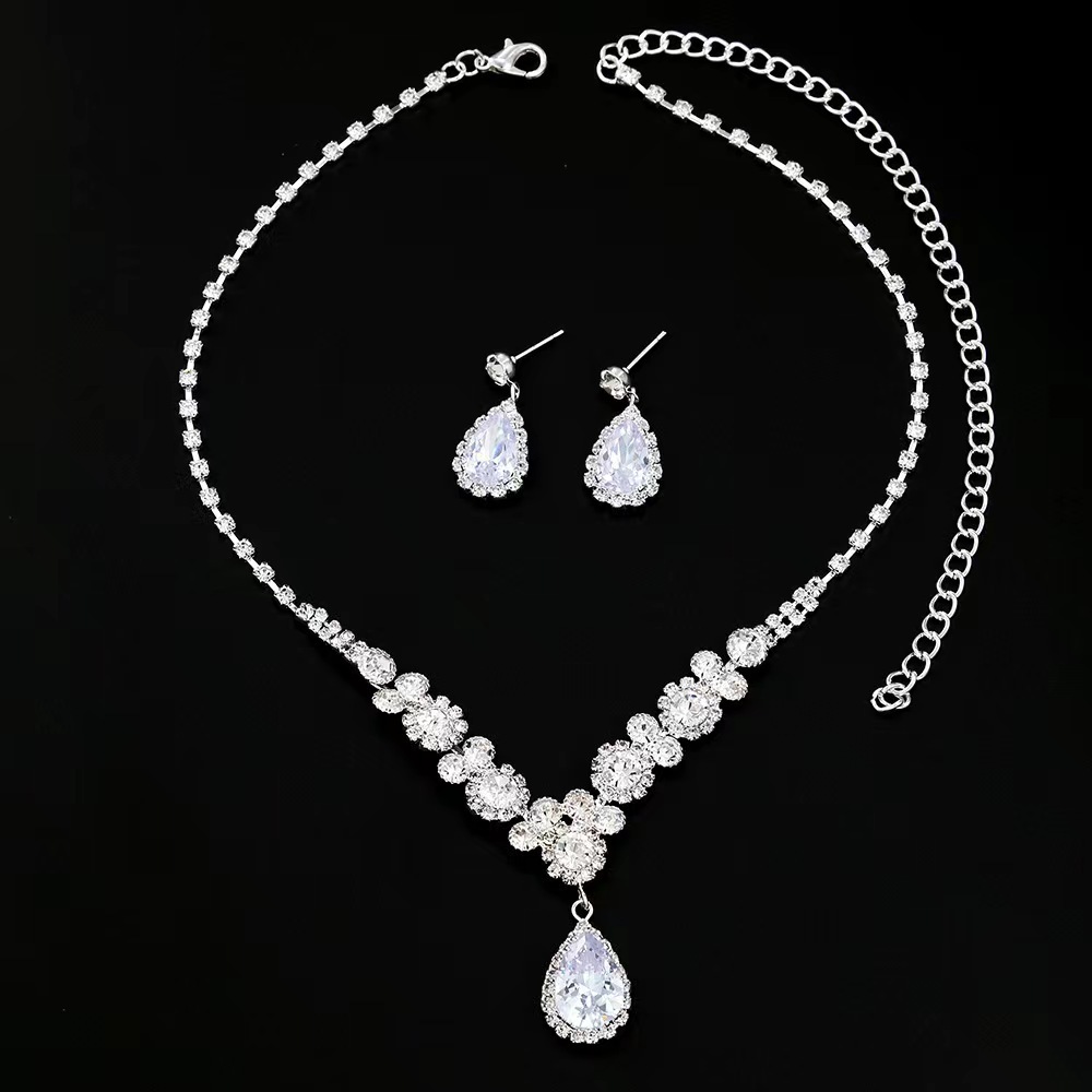 | nameOriginal | Brilliant diamond zircon water drop necklace earrings bride wedding jewelry shooting jewelry suit wholesale |