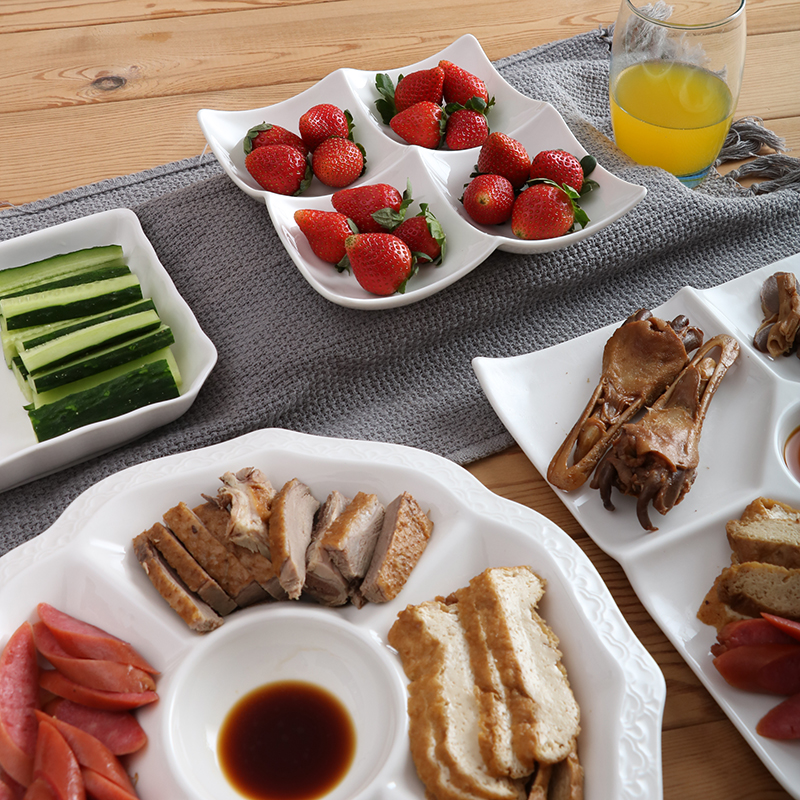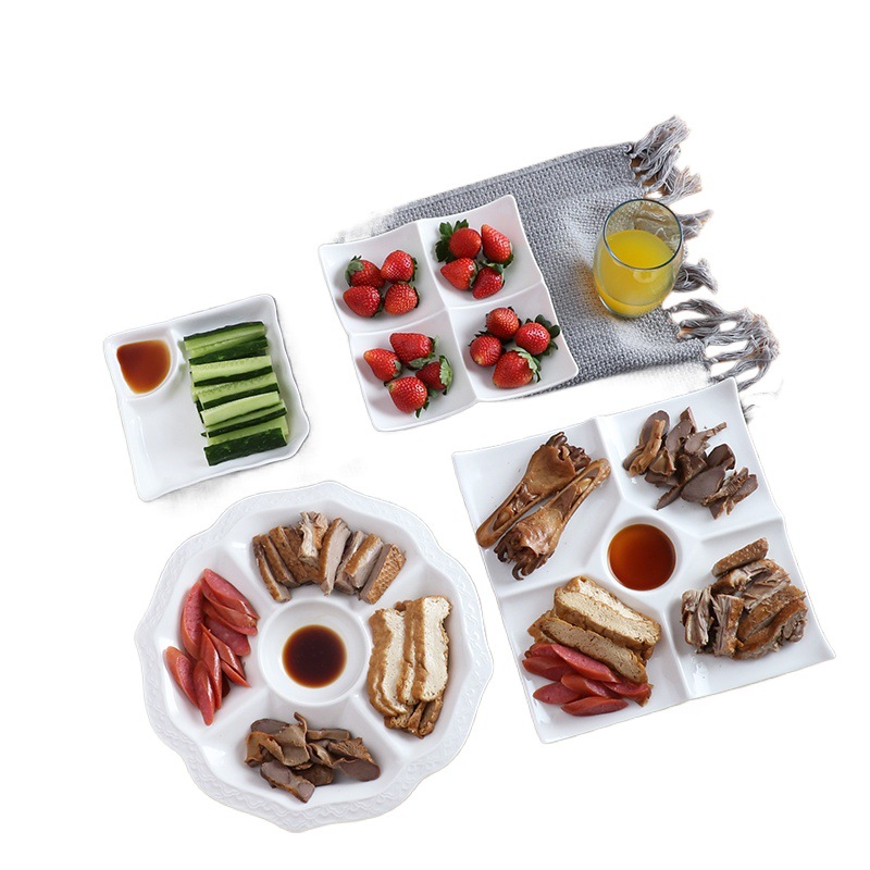 | nameOriginal | Brine platter hotel restaurant plate dried fruit snack snacks grid plate multi-grid five-grid plate ceramic plate |
