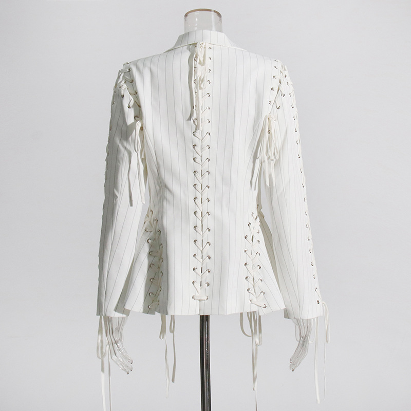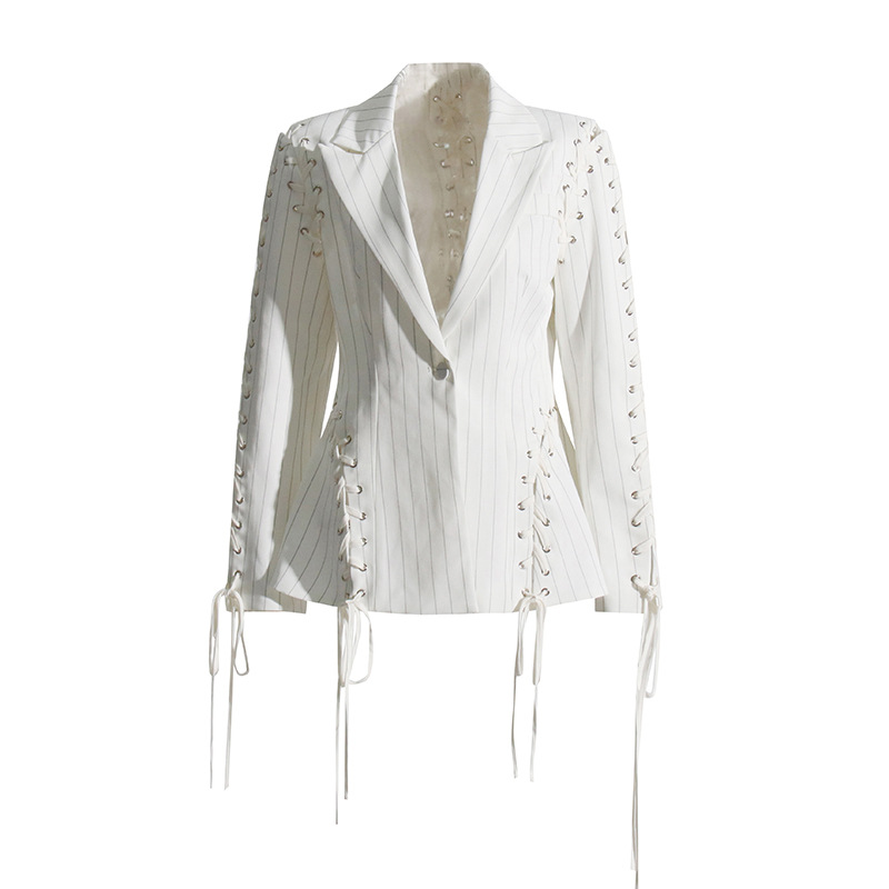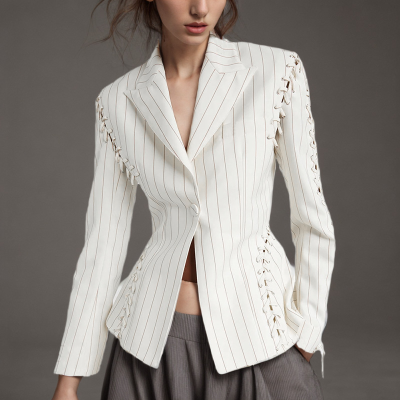 | nameOriginal | British commuter style 2024 spring new gun collar long sleeve one button placket striped printed small suit jacket |