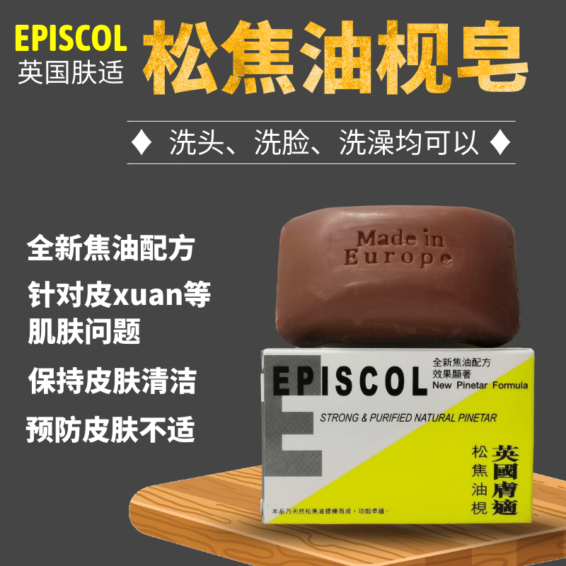 British EPISCOL skin-friendly pine tar soap 100g cleansing ringworm body care moss functional soap
