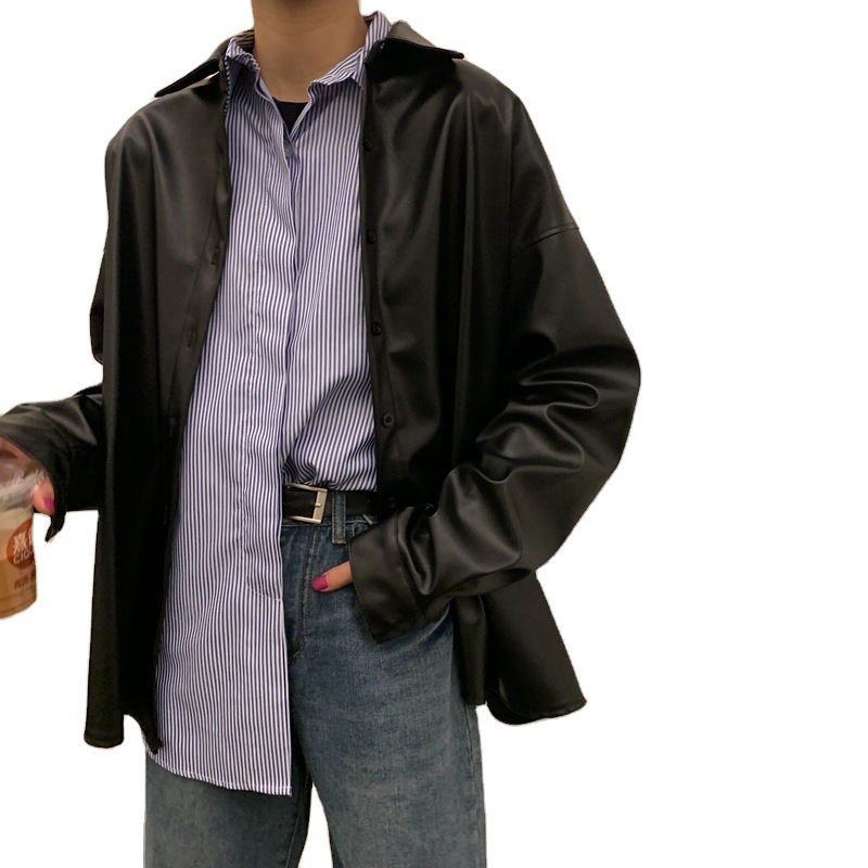 | nameOriginal | British fashion imitation leather jacket PU shirt AliExpress Amazon 2021 spring and autumn BF loose motorcycle coat |