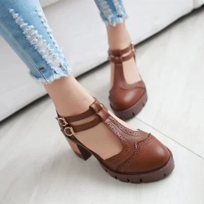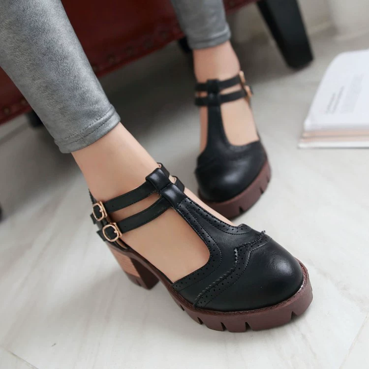 | nameOriginal | British retro waterproof platform thick heel women's shoes summer new fashion double buckle strap toe cap medium heel large size girl sandals |