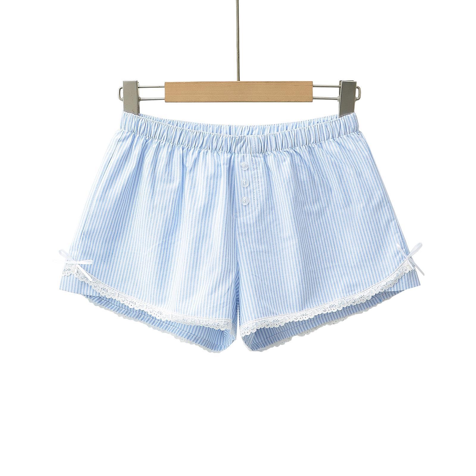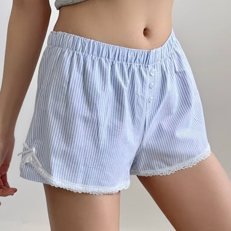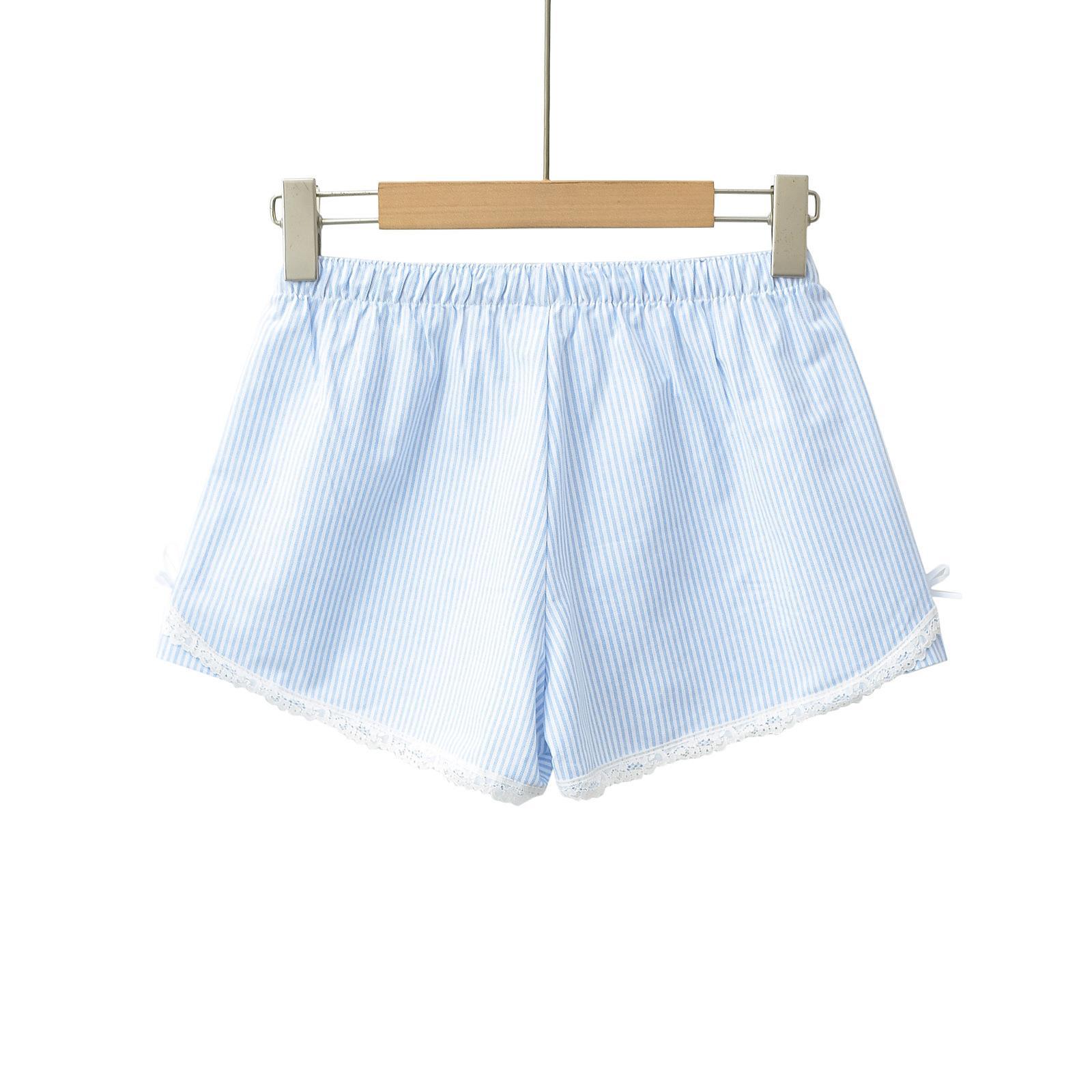 | nameOriginal | British style fresh blue white striped elastic waist white lace home style shorts elastic waist women's hot pants |