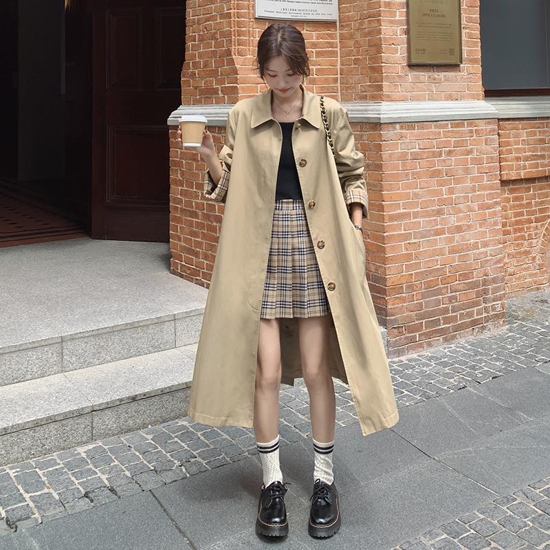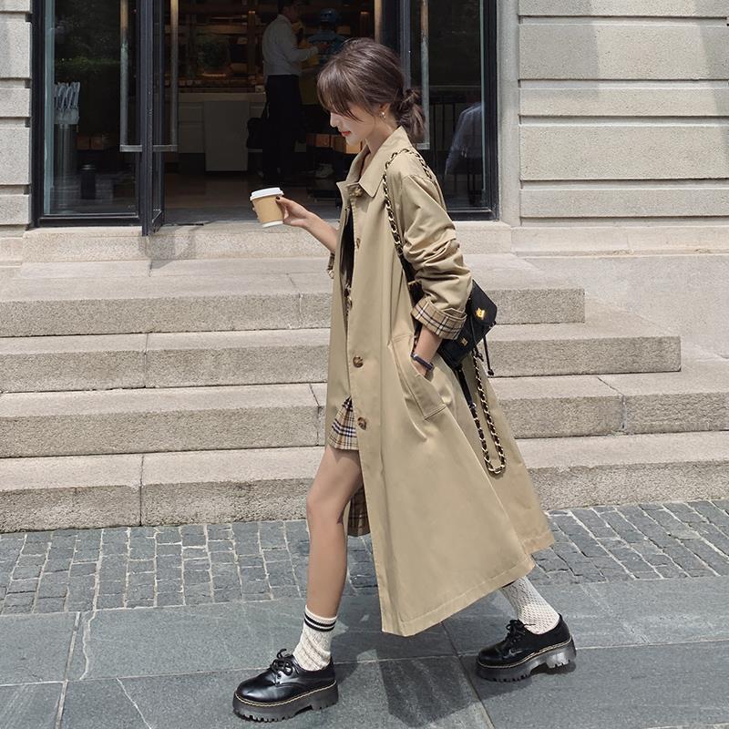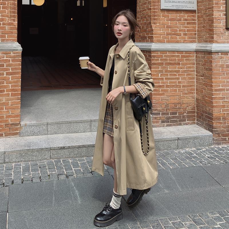 British style high-grade trench coat for women 2024 spring new khaki loose draping mid-length coat