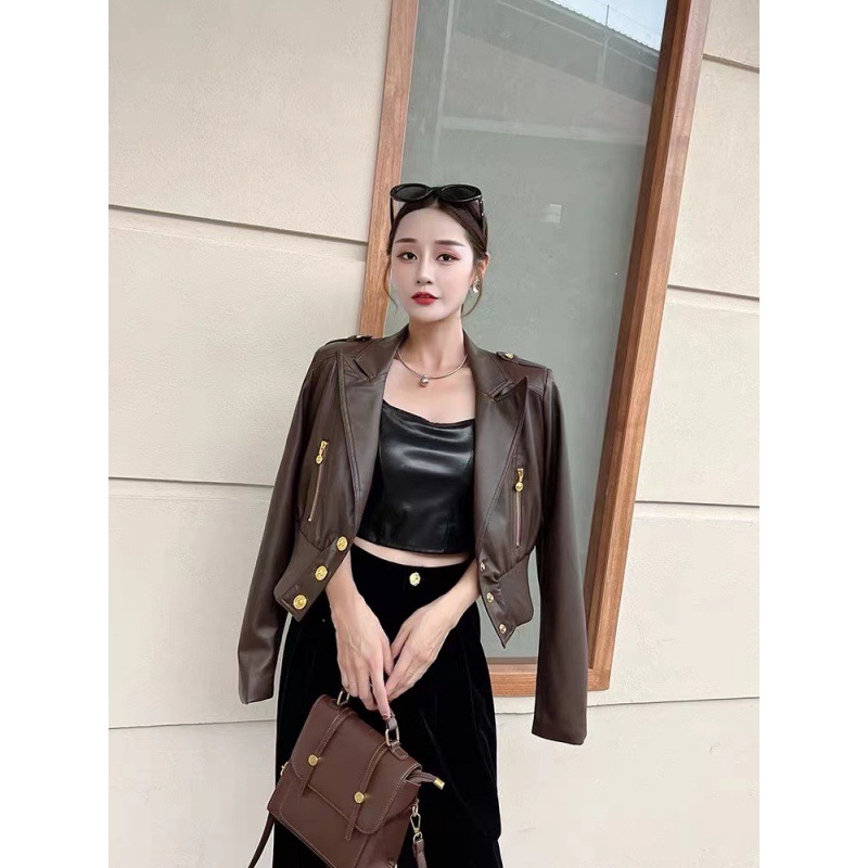 | nameOriginal | British style pu leather coat for women 2024 new autumn and winter elegant goddess style short motorcycle jacket |