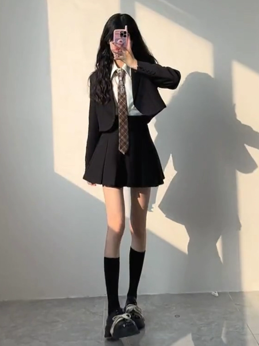 | nameOriginal | British style salt shirt pleated skirt blazer |
