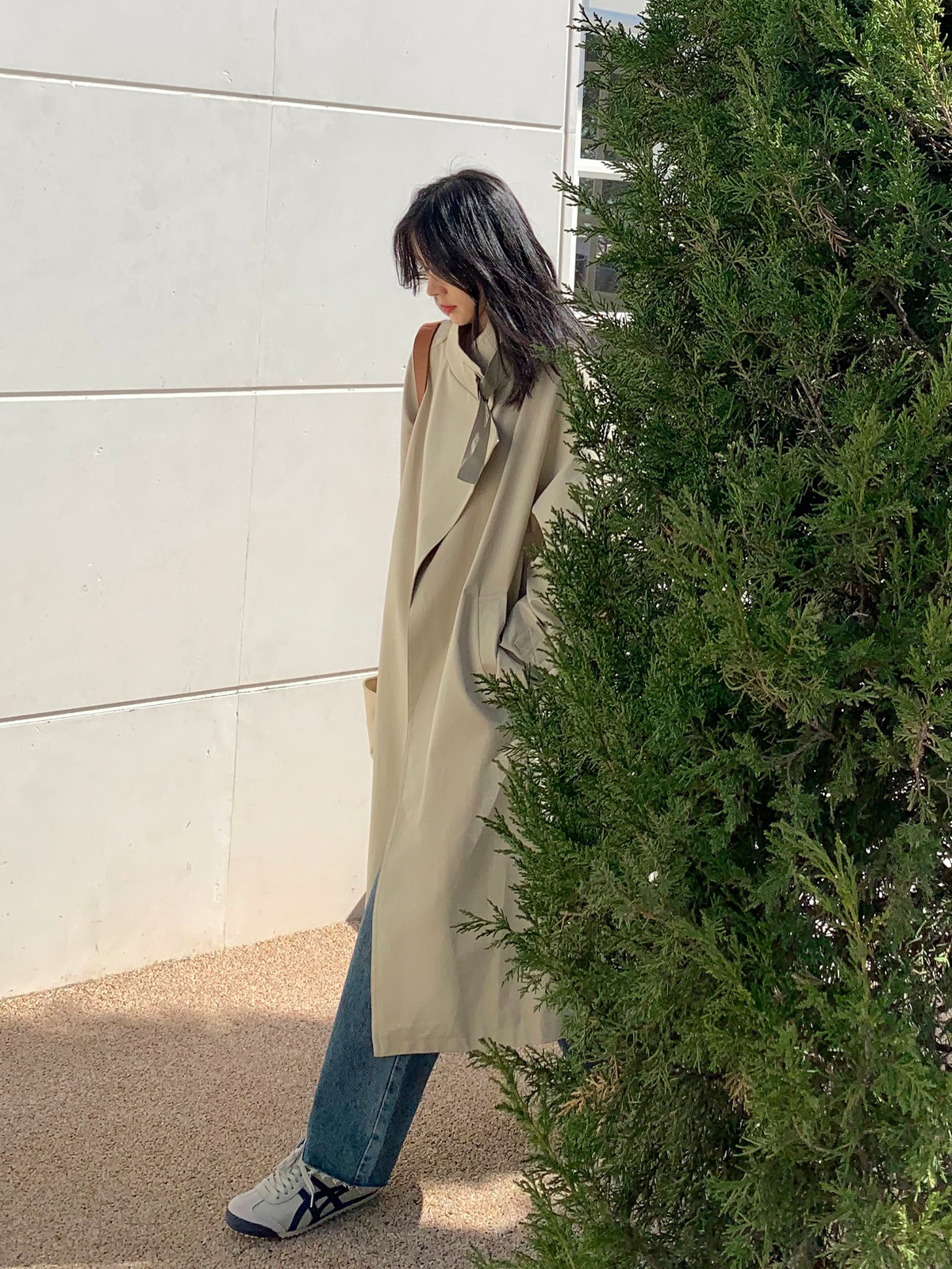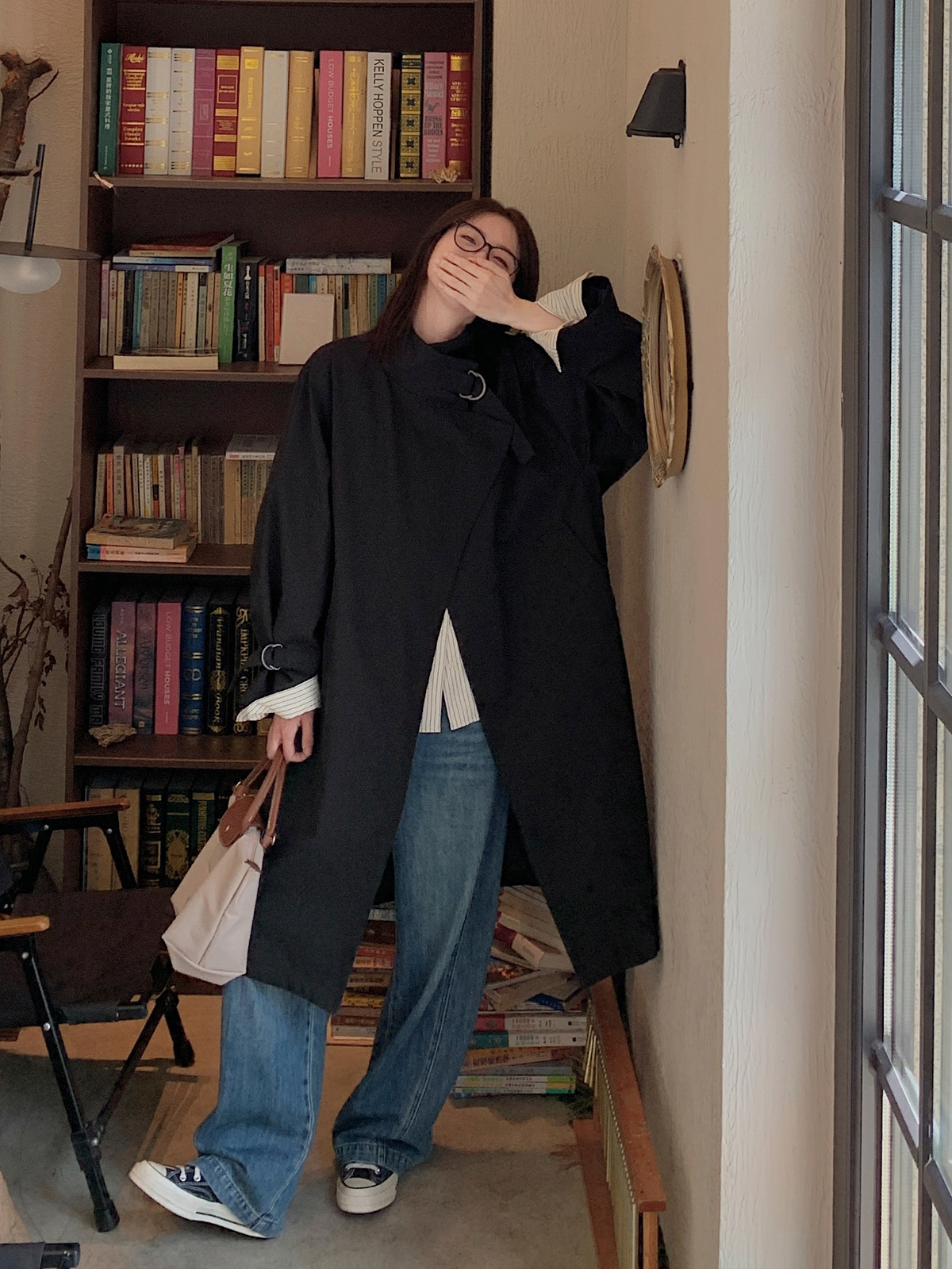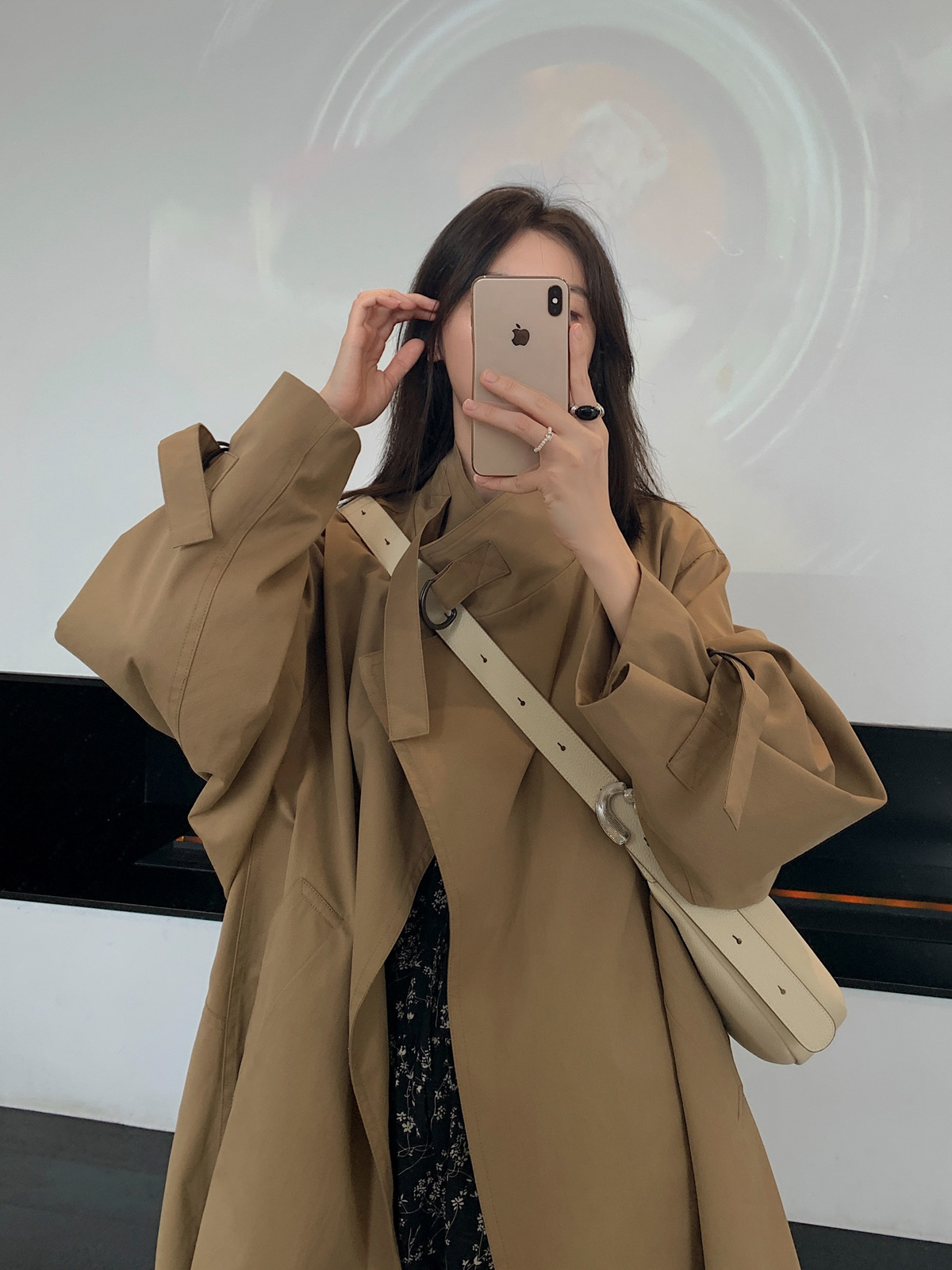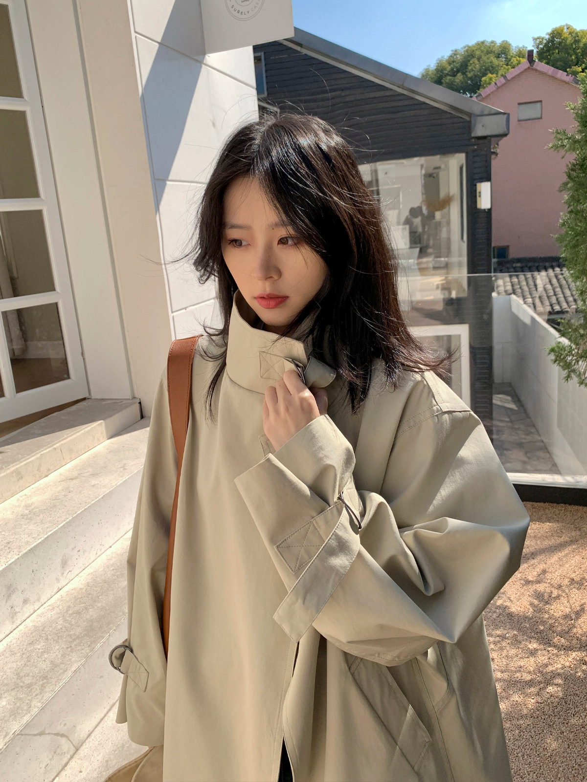 British style stand collar trench coat for women 2024 spring new design loose mid-length over-the-knee coat