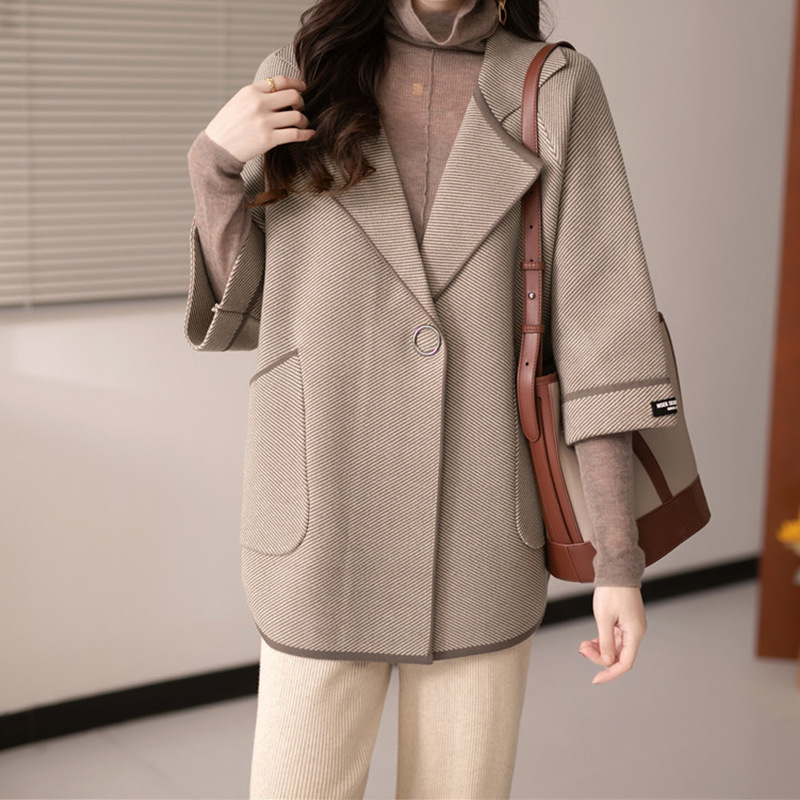 | nameOriginal | British Style Suit Collar Elegant Commuter Knitted Cardigan Autumn and Winter New Mid-length Striped Cross-border Large Size Coat for Women |