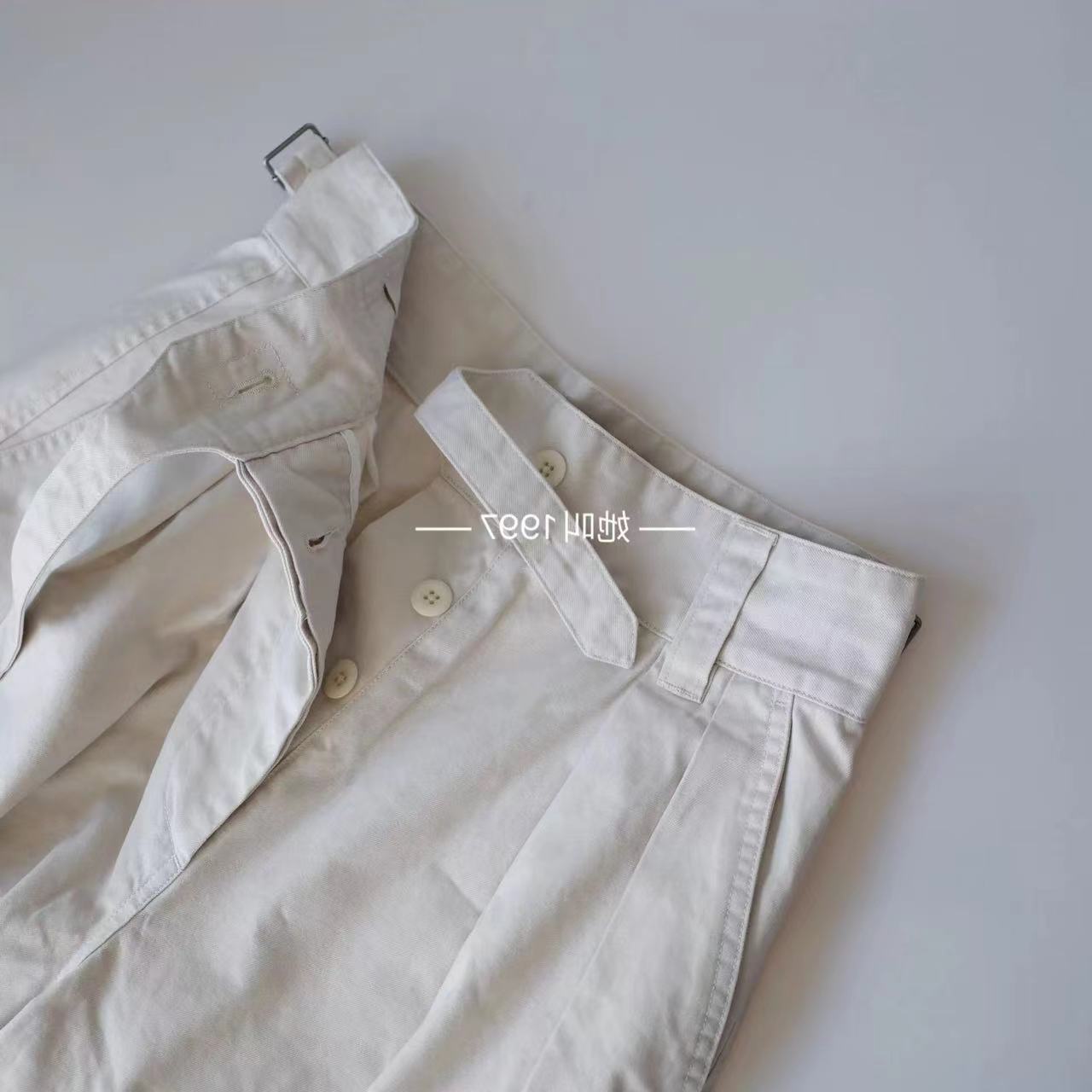 | nameOriginal | British-tone double-pleated cotton high-waist shorts with waist loop embellished five-point pants for women |