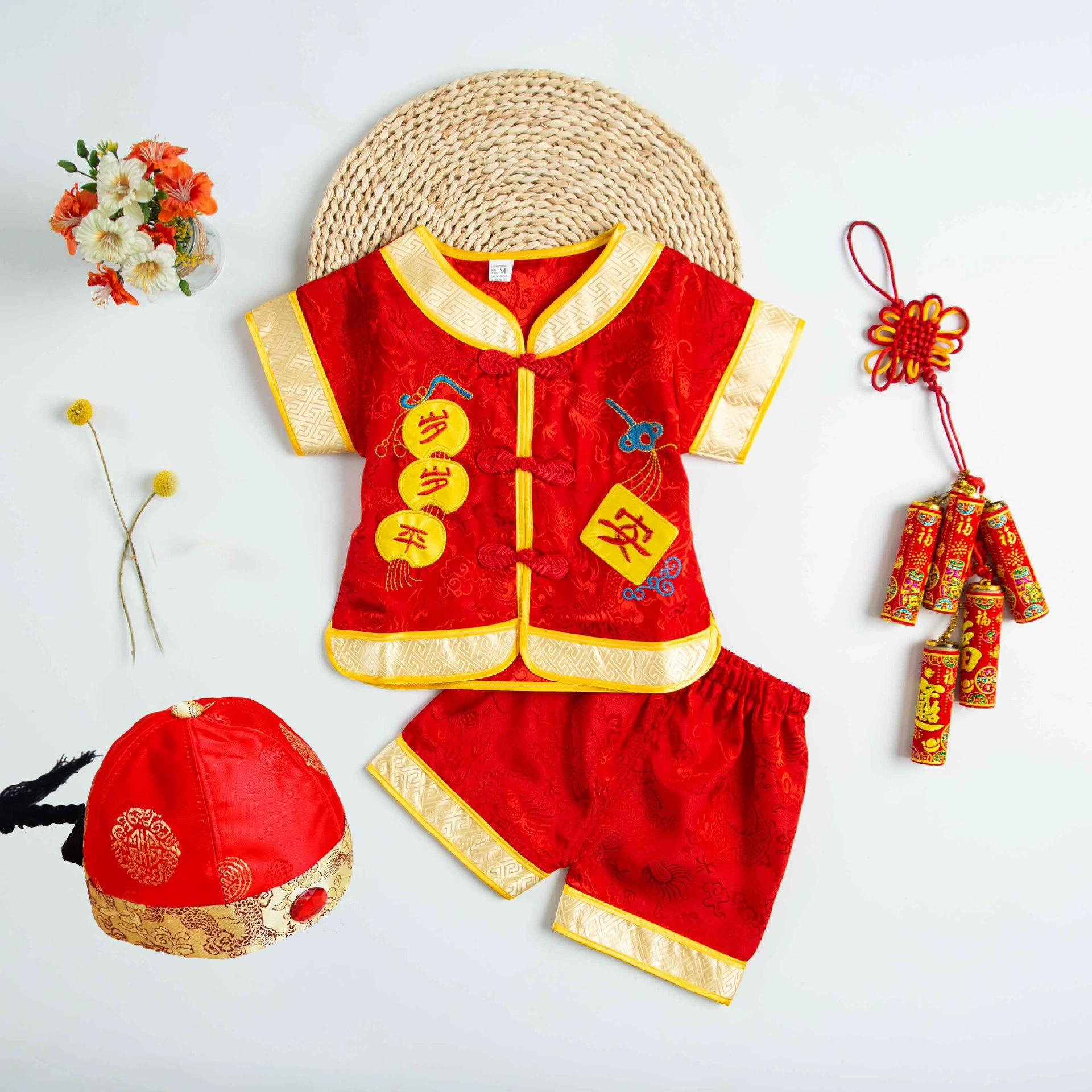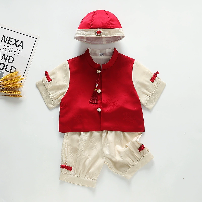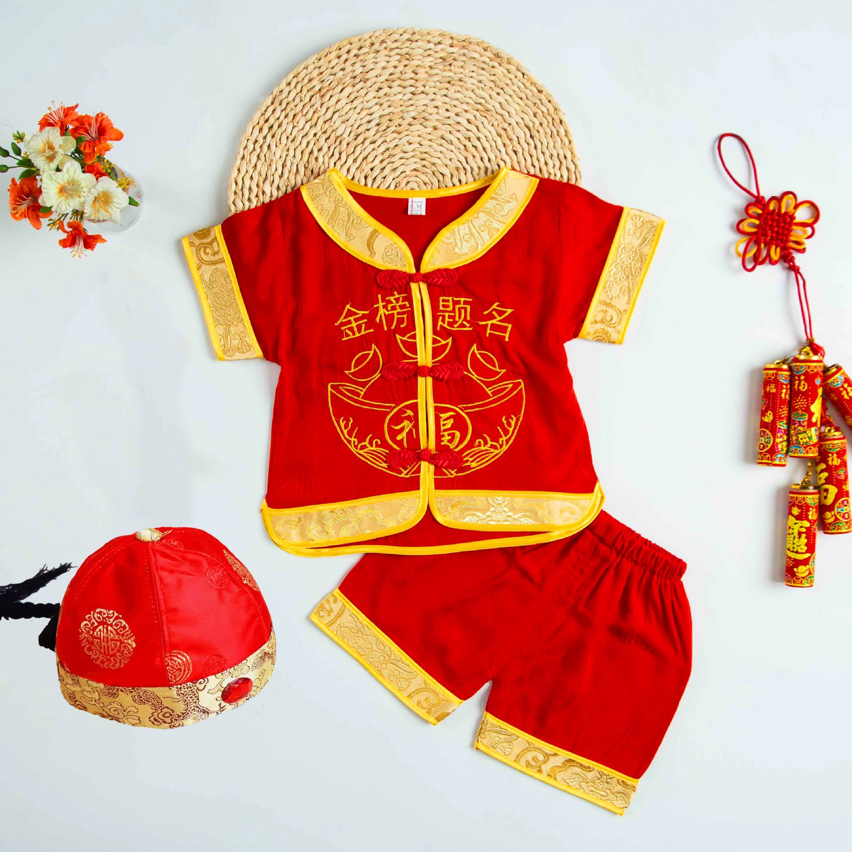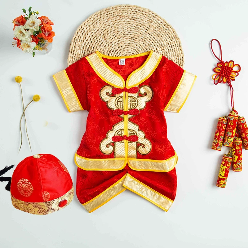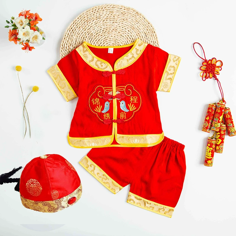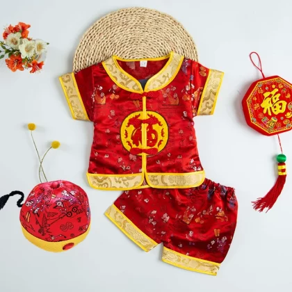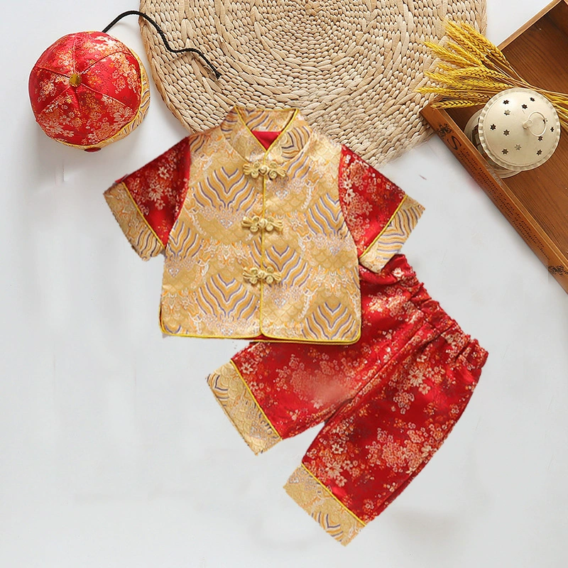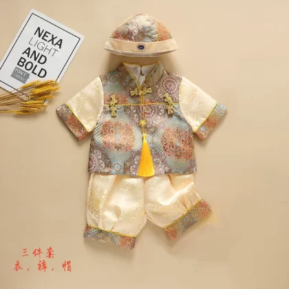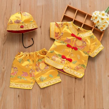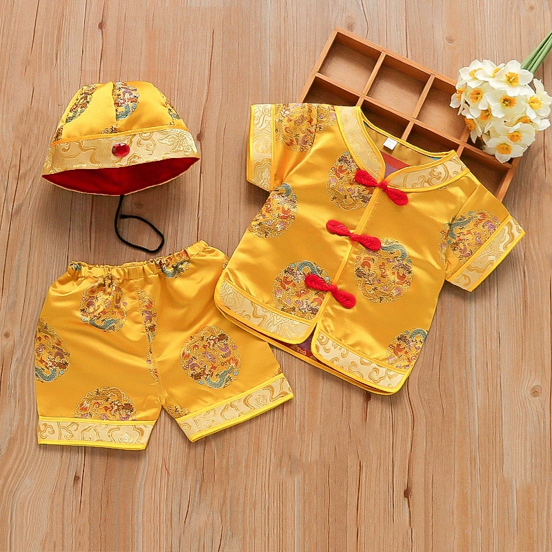 | nameOriginal | Brocade Young Master Yellow Mandarin Short Sleeve Baby Tang Suit |