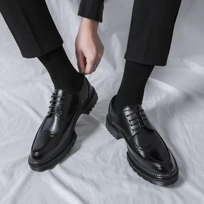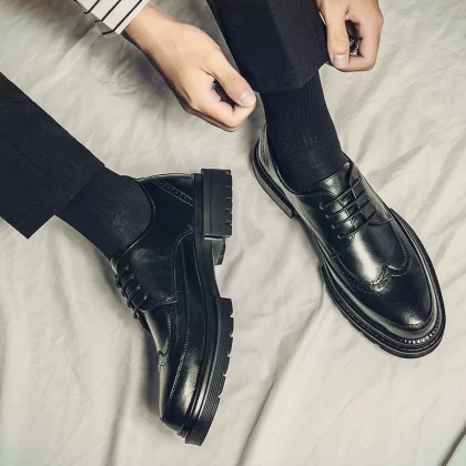 Brogue Youth Black Casual Wedding Groom Leather Shoes