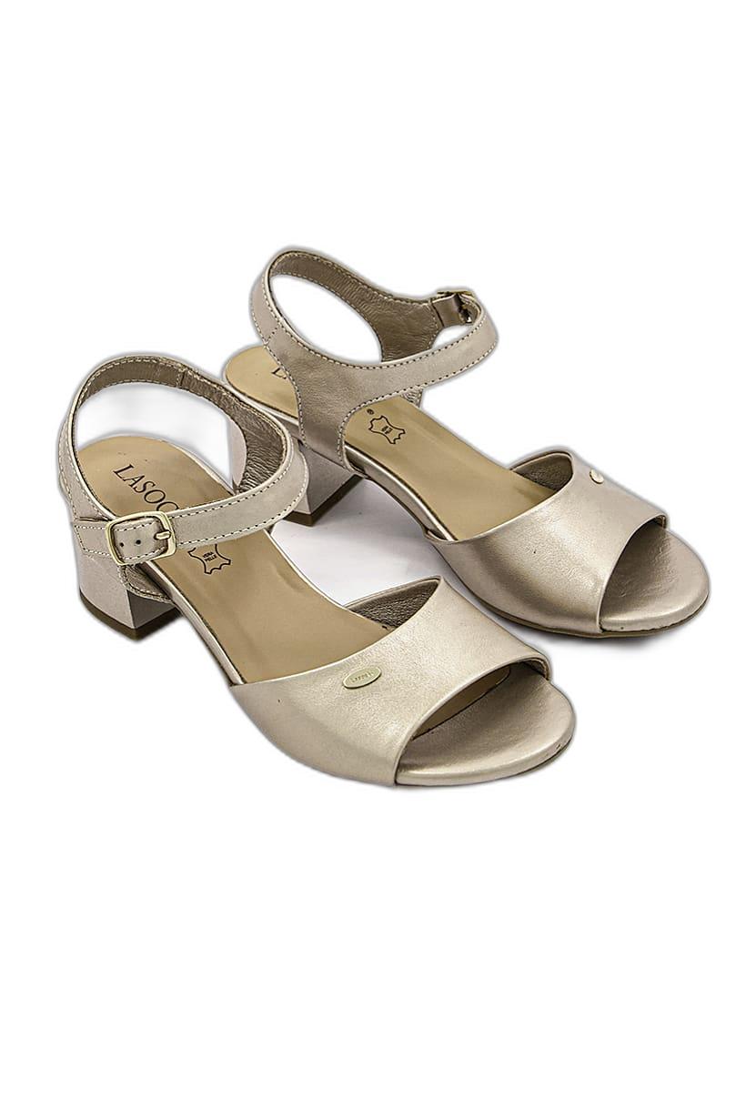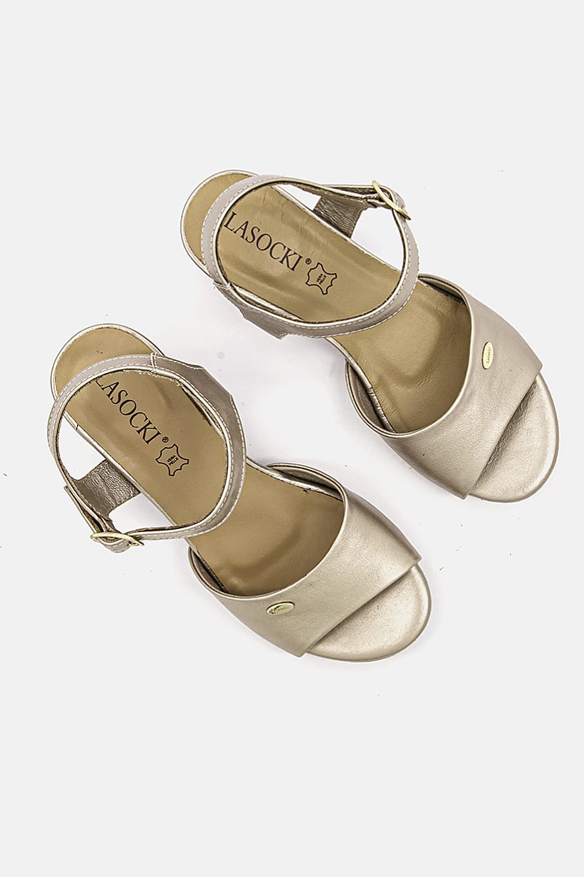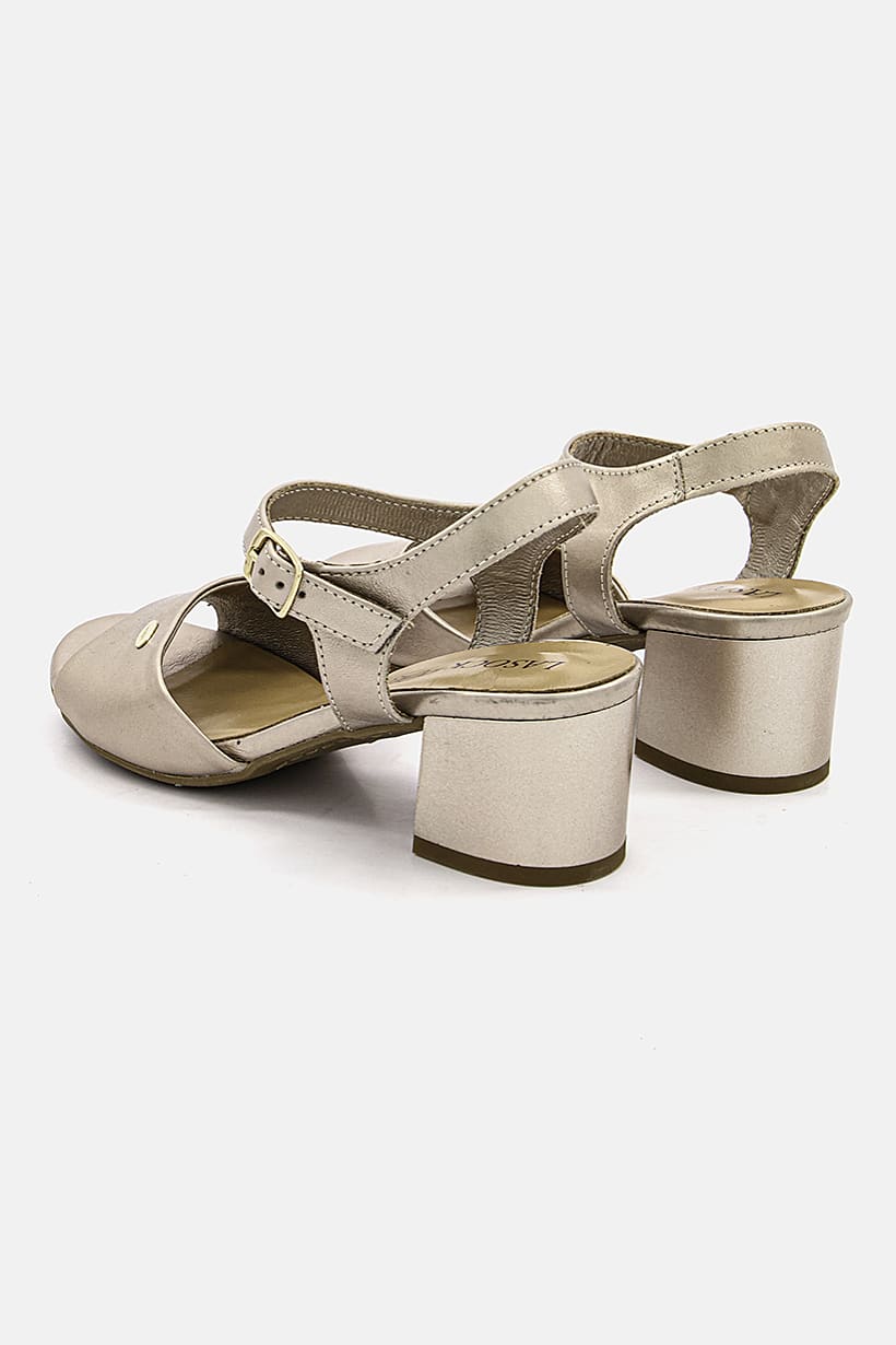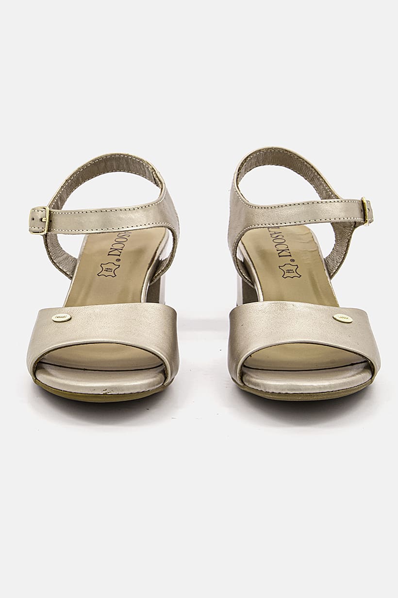 Bronze Block Heel Sandals with Adjustable Buckle for Women.