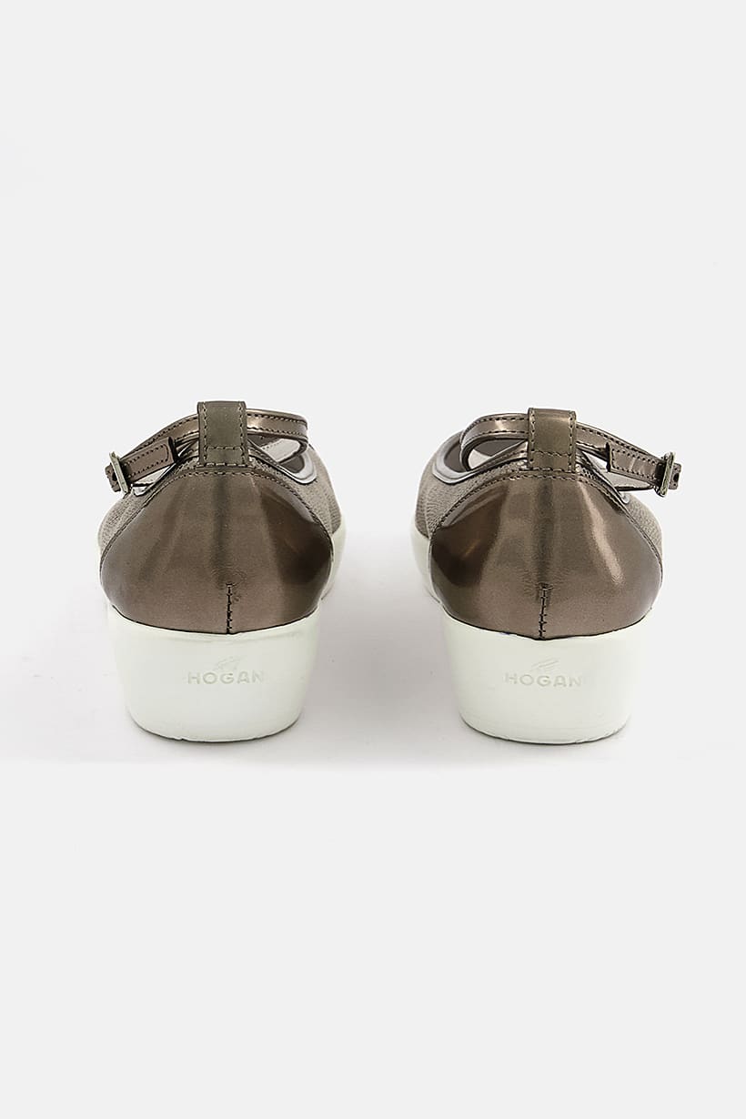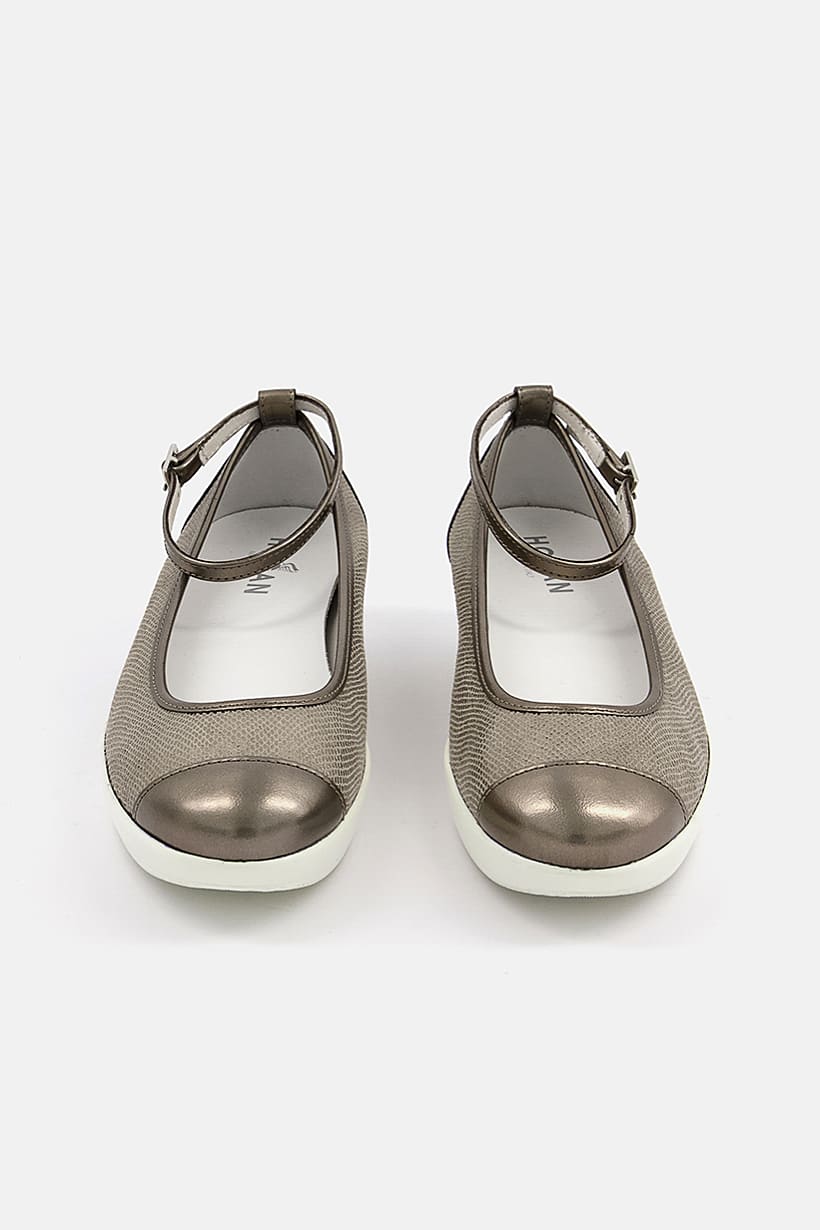 Bronze Slip-On Flat Shoes with Ballerina Strap for Girls.