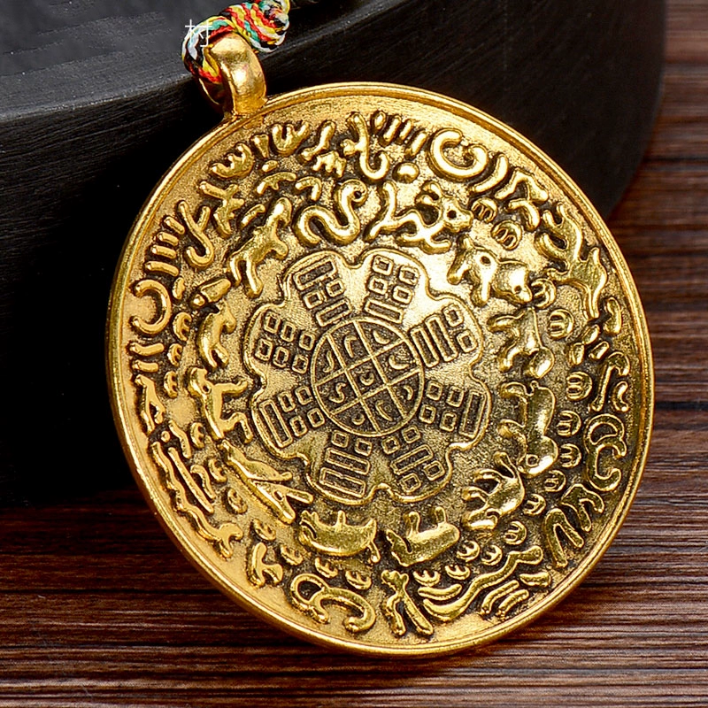 Bronze Waist Medal Manjusri Nine Palaces Bagua Tag Eight Auspicious Pendants Twelve Zodiac Men and Women Necklace Pendant