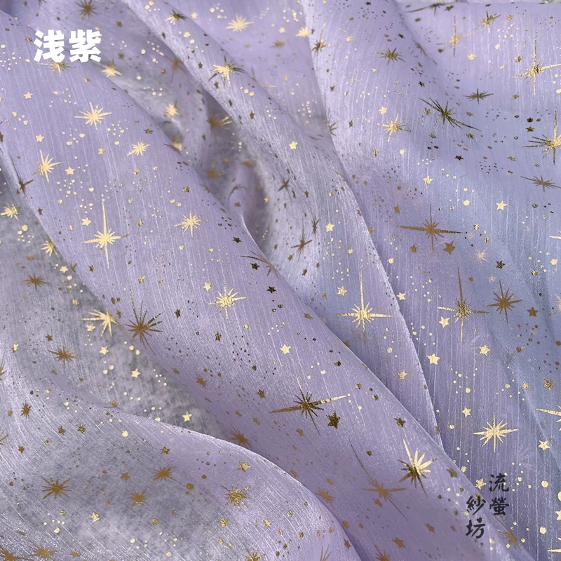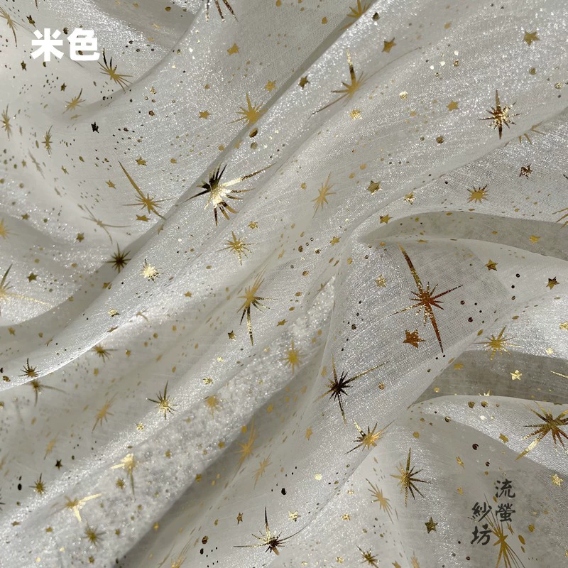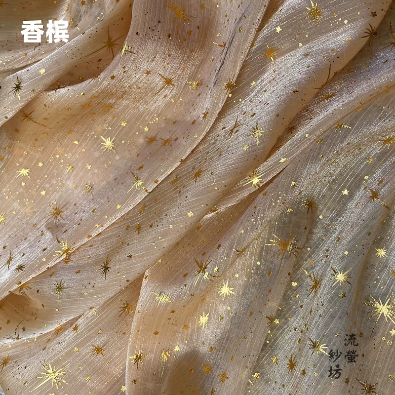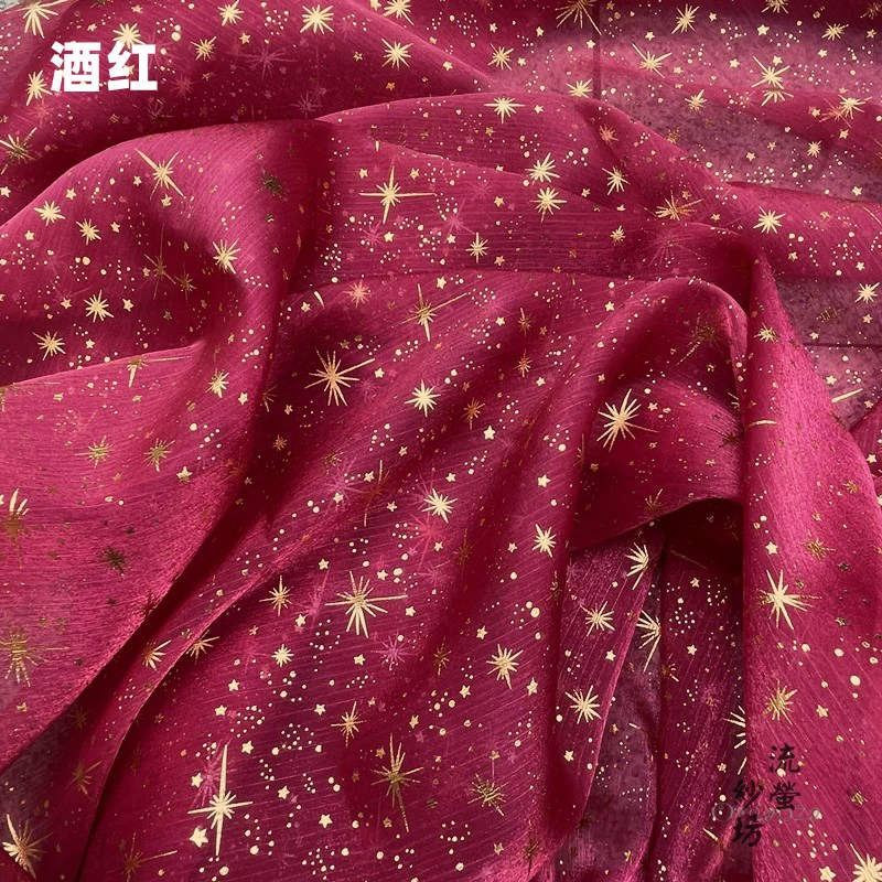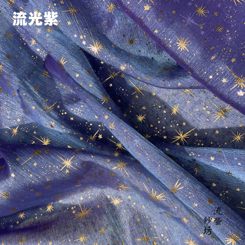| nameOriginal | Bronzing starry sky yarn, bright silk crepe large-sleeved shirt fabric, wrinkled organza, water rippled organza |
