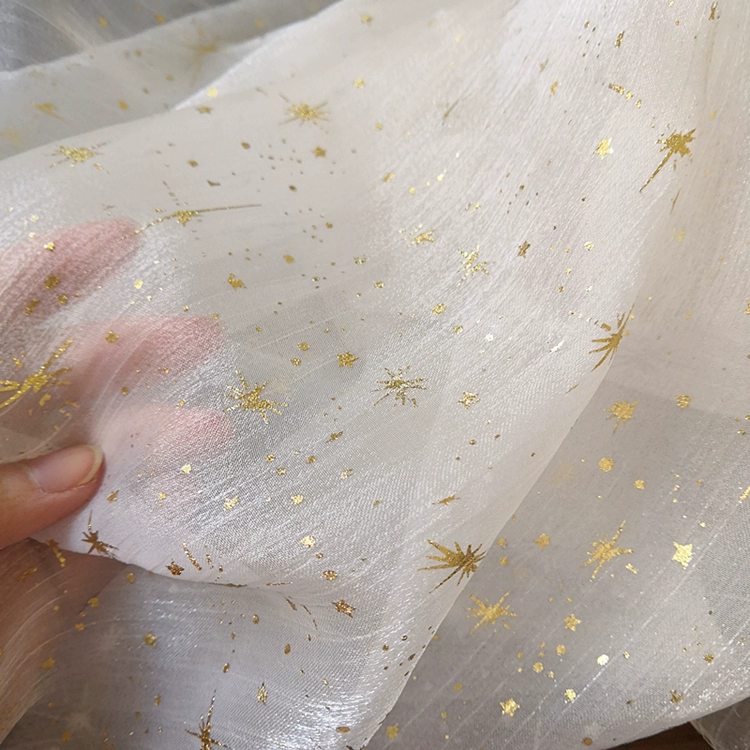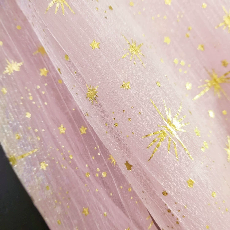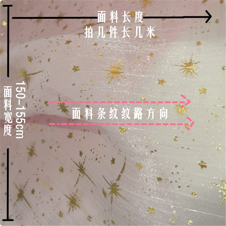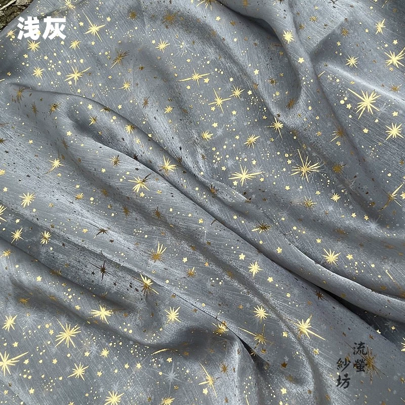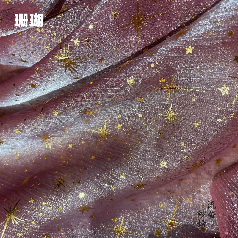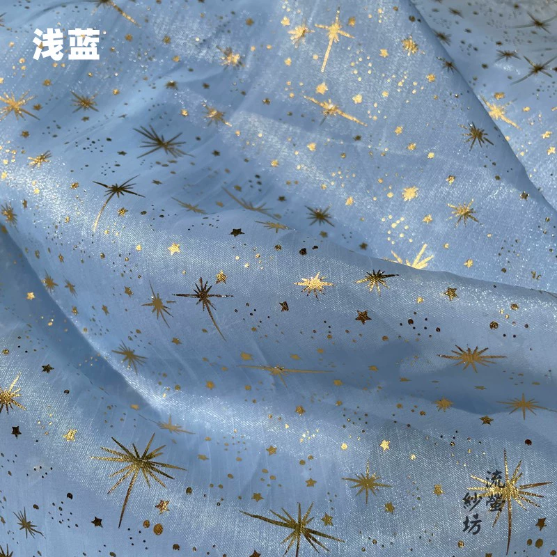 | nameOriginal | Bronzing starry sky yarn, bright silk crepe large-sleeved shirt fabric, wrinkled organza, water rippled organza |