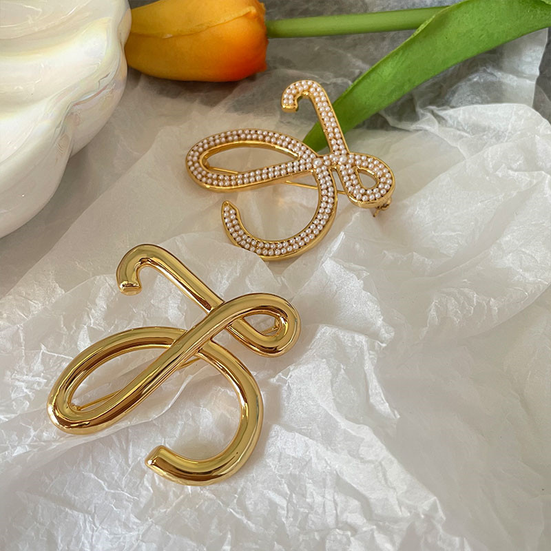 Brooch niche design geometric hollow corsage personality pearl pin sweater coat suit brooch manufacturer in stock