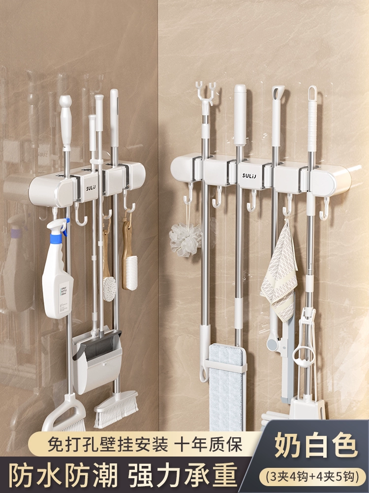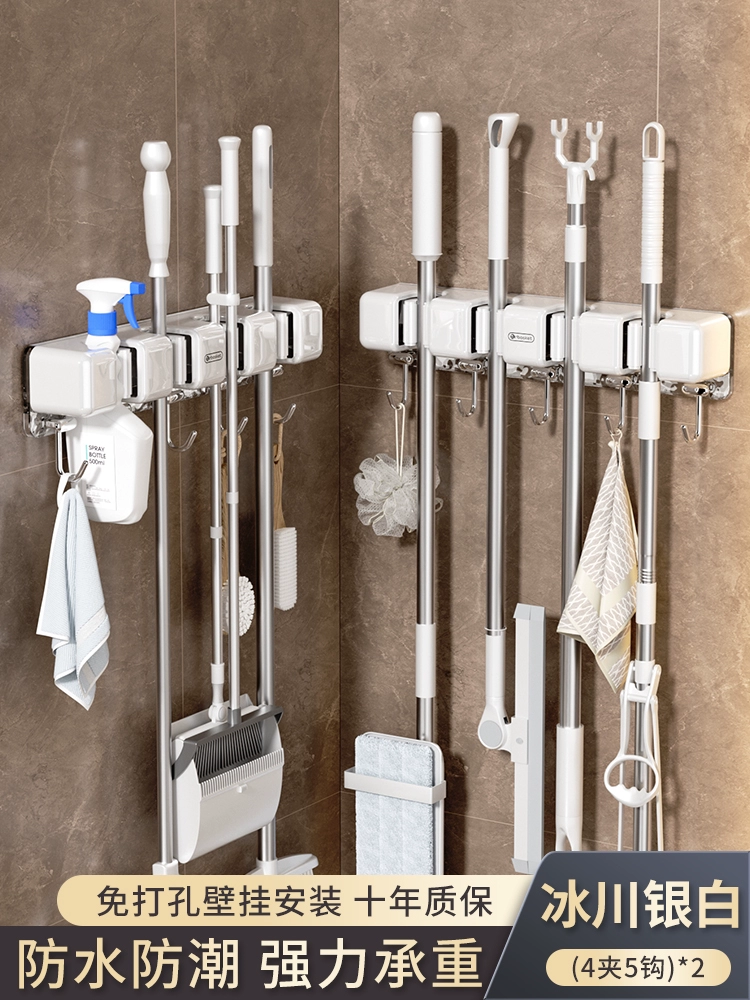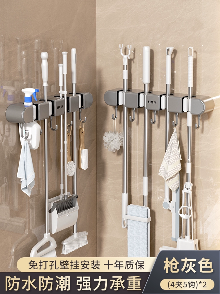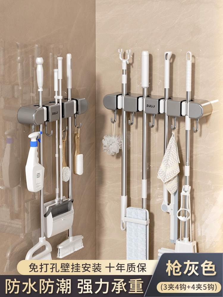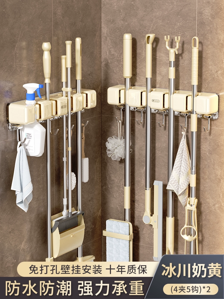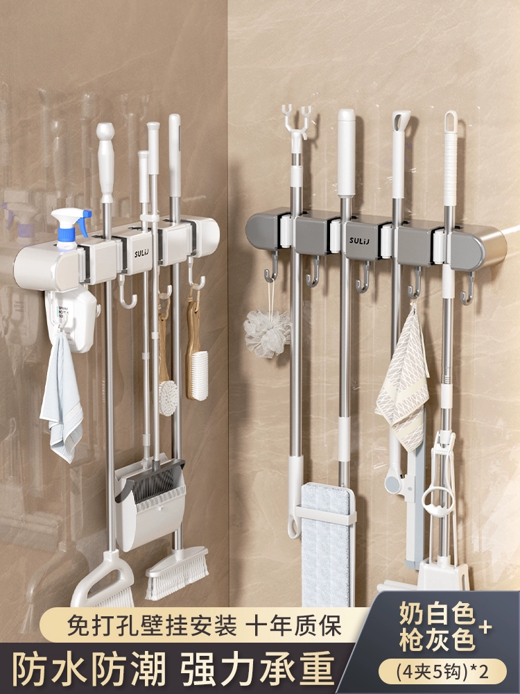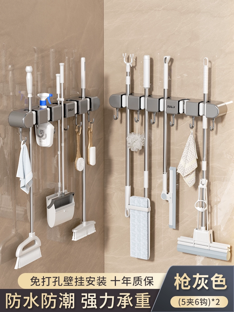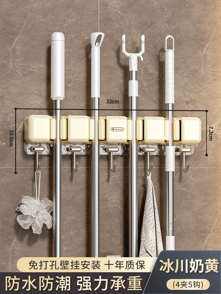 Broom and mop no punching artifact storage buckle wall hanging