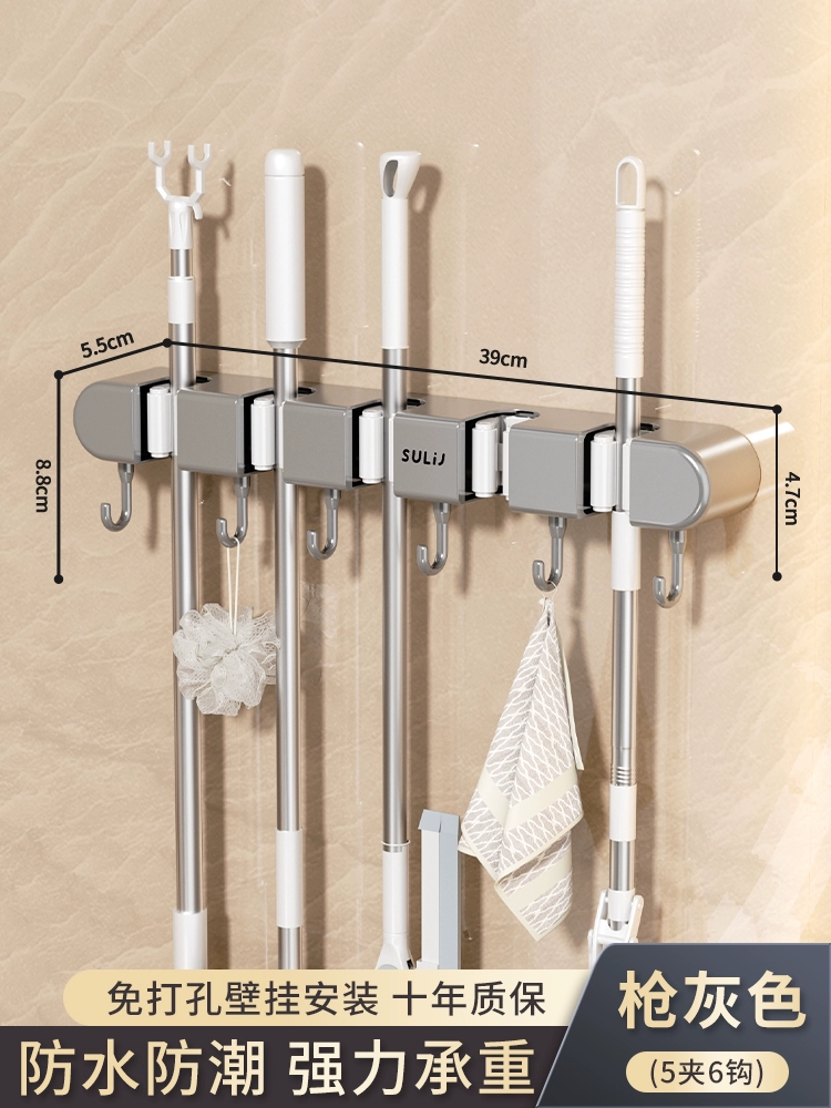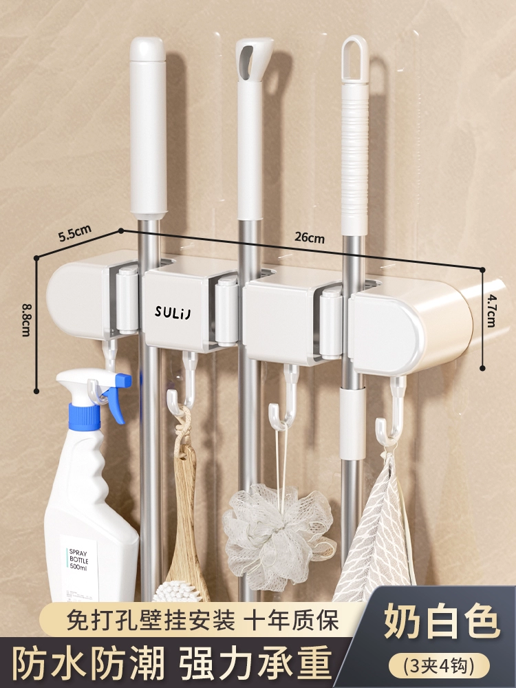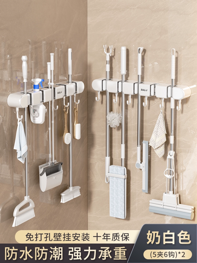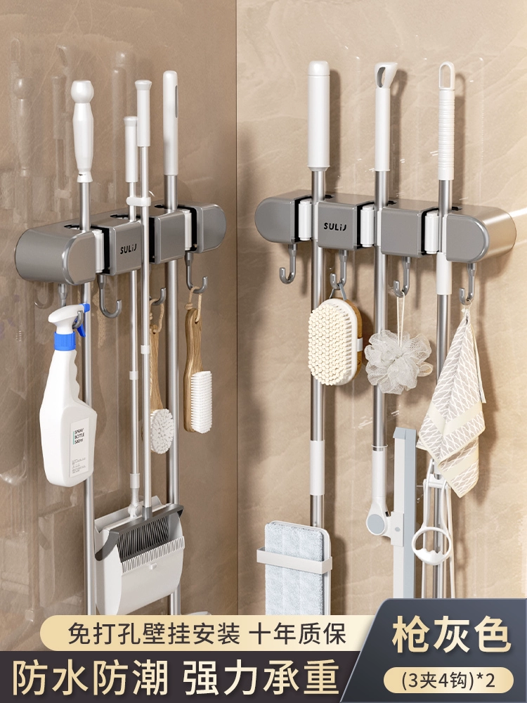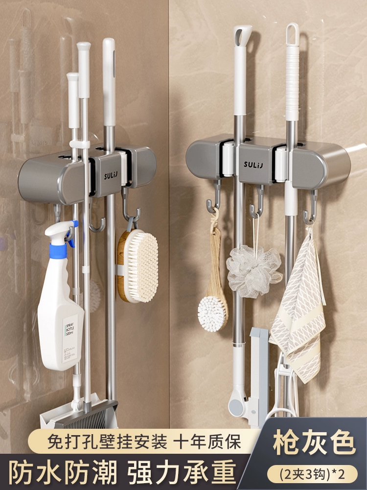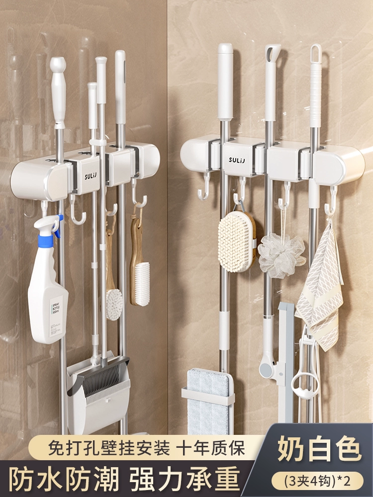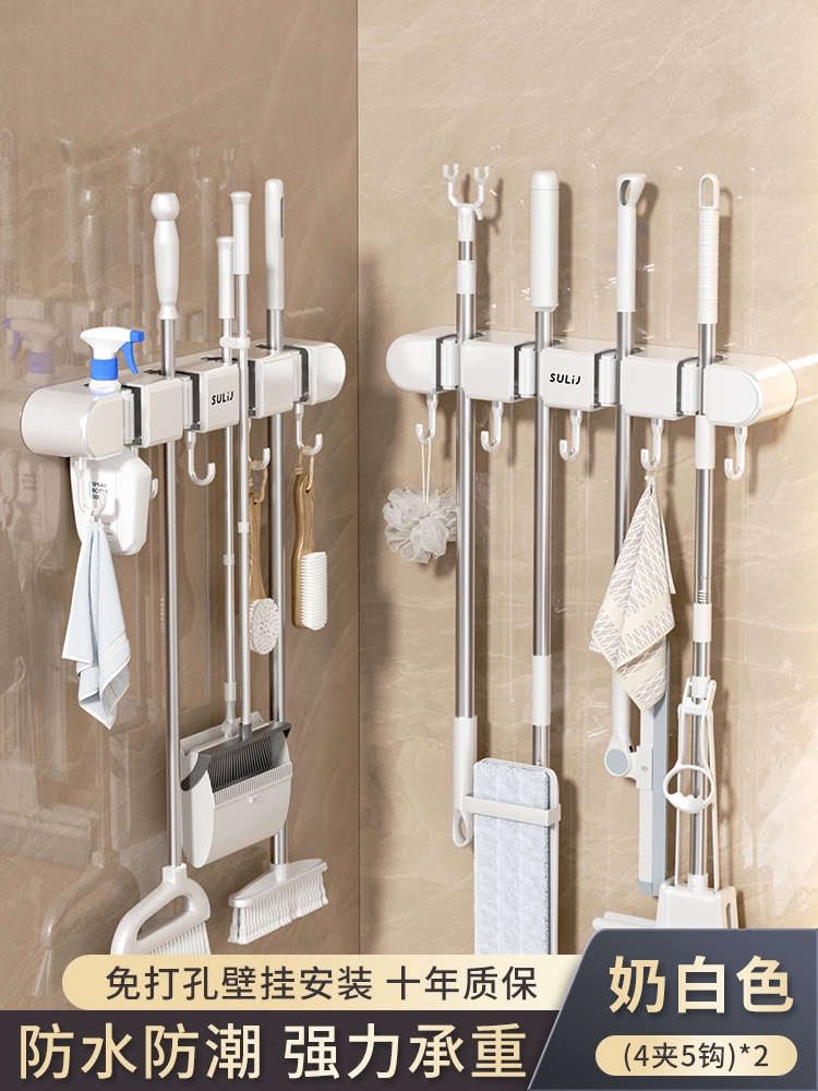 Broom and mop no punching artifact storage buckle wall hanging