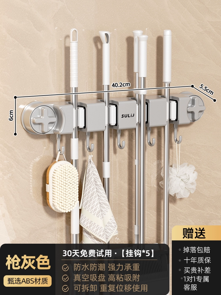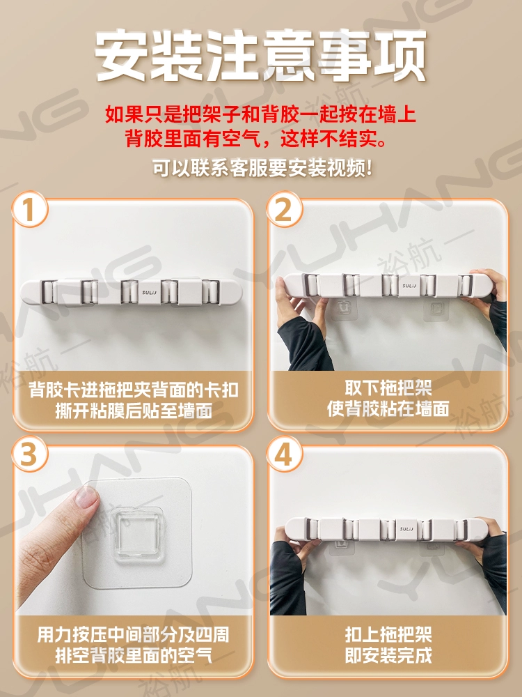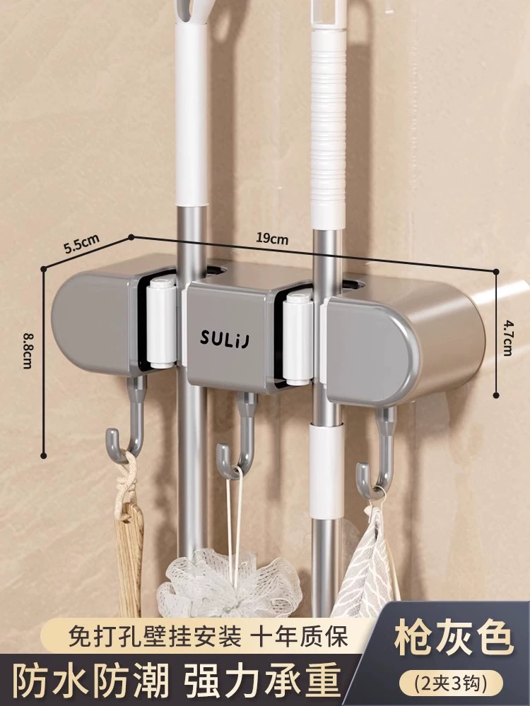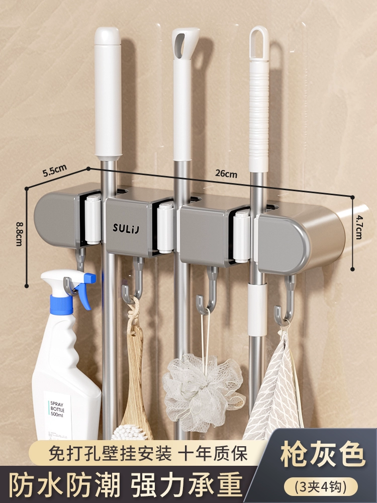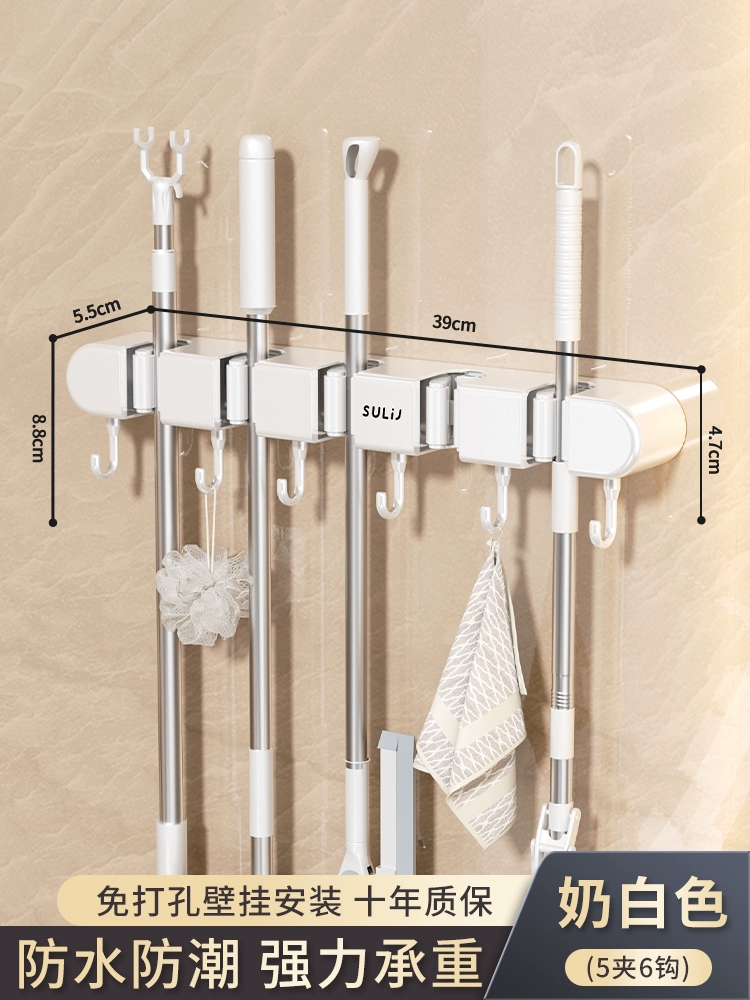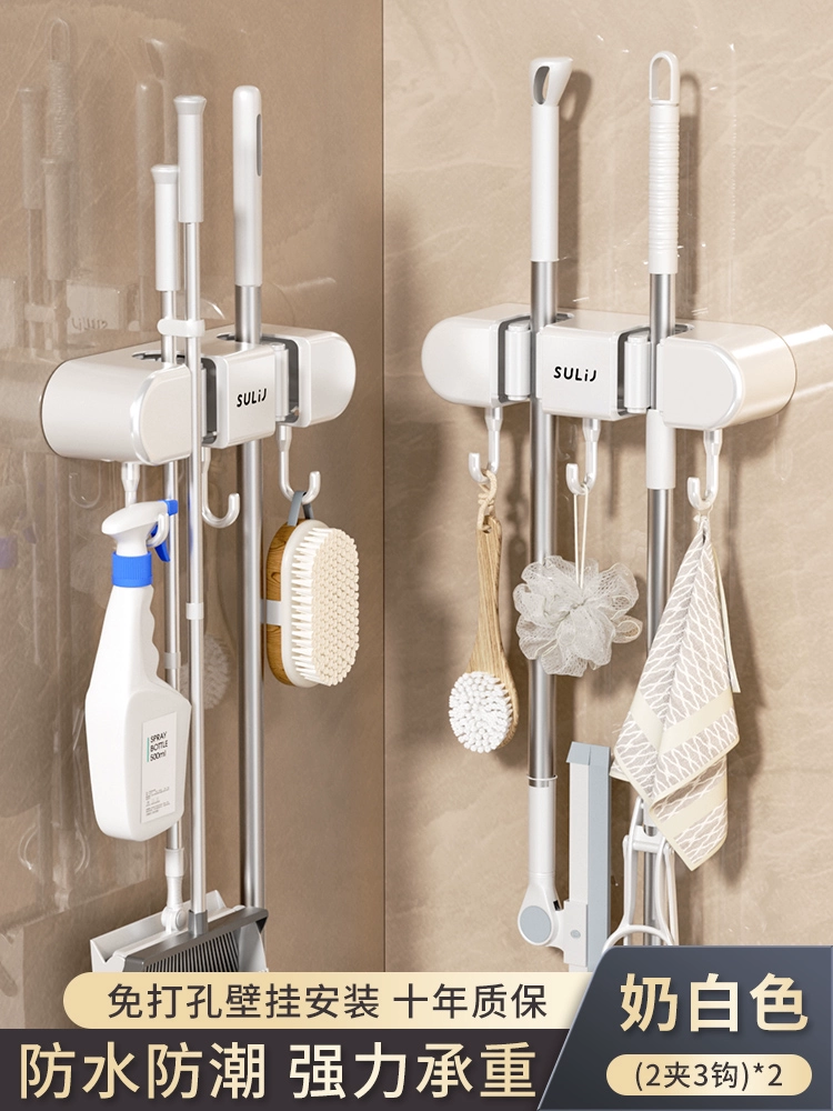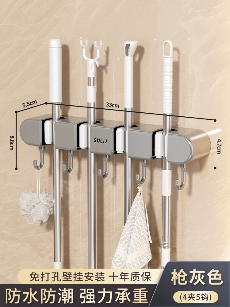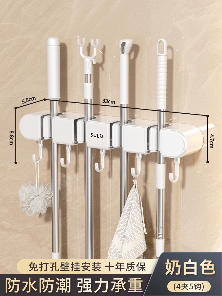 Broom and mop no punching artifact storage buckle wall hanging