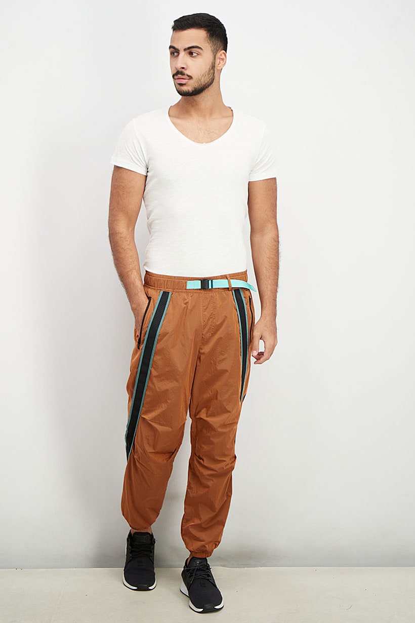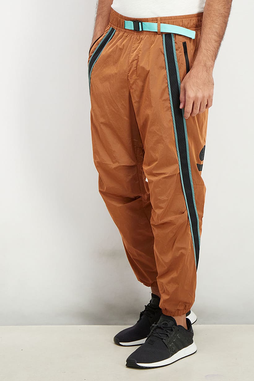 Care : Machine washable, Fit : Sportswear Fit, Size shown : Asian, Thickness : Light, Type of Sport : Training, Fabrics : 100% Nylon, Pattern & Print : Plain/Solid, Brand Logo, Sportswear Type : Track Pants, Color Family : Brown,
