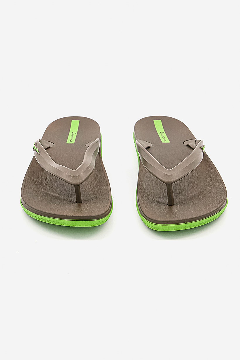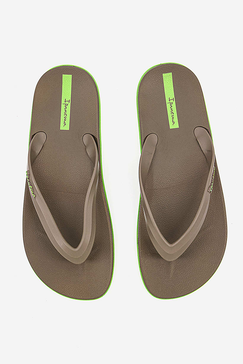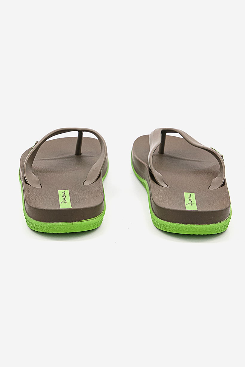 | sub_Categories | Shoes, Slides & Slippers, men brand logo slip on flip flops brown and green |