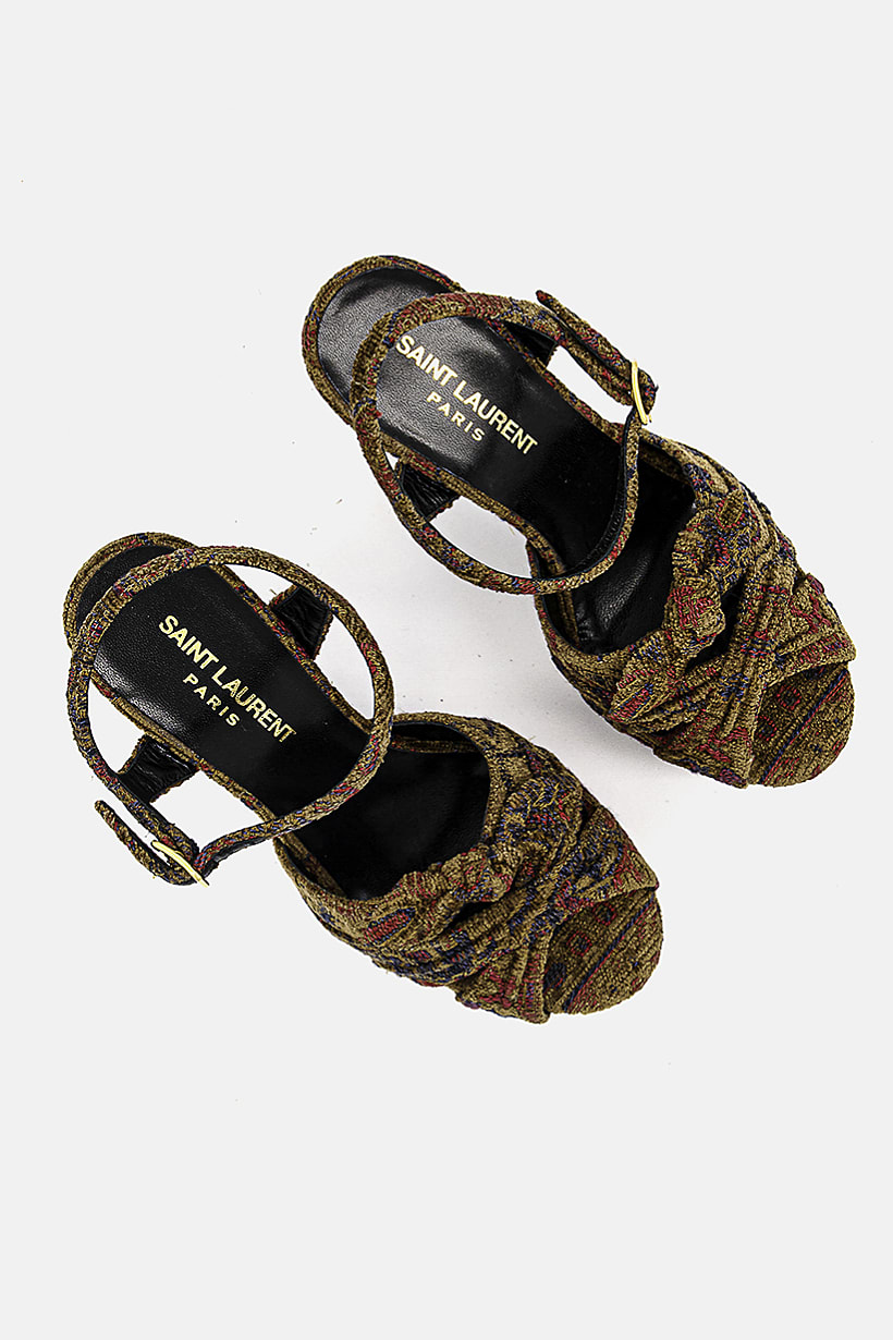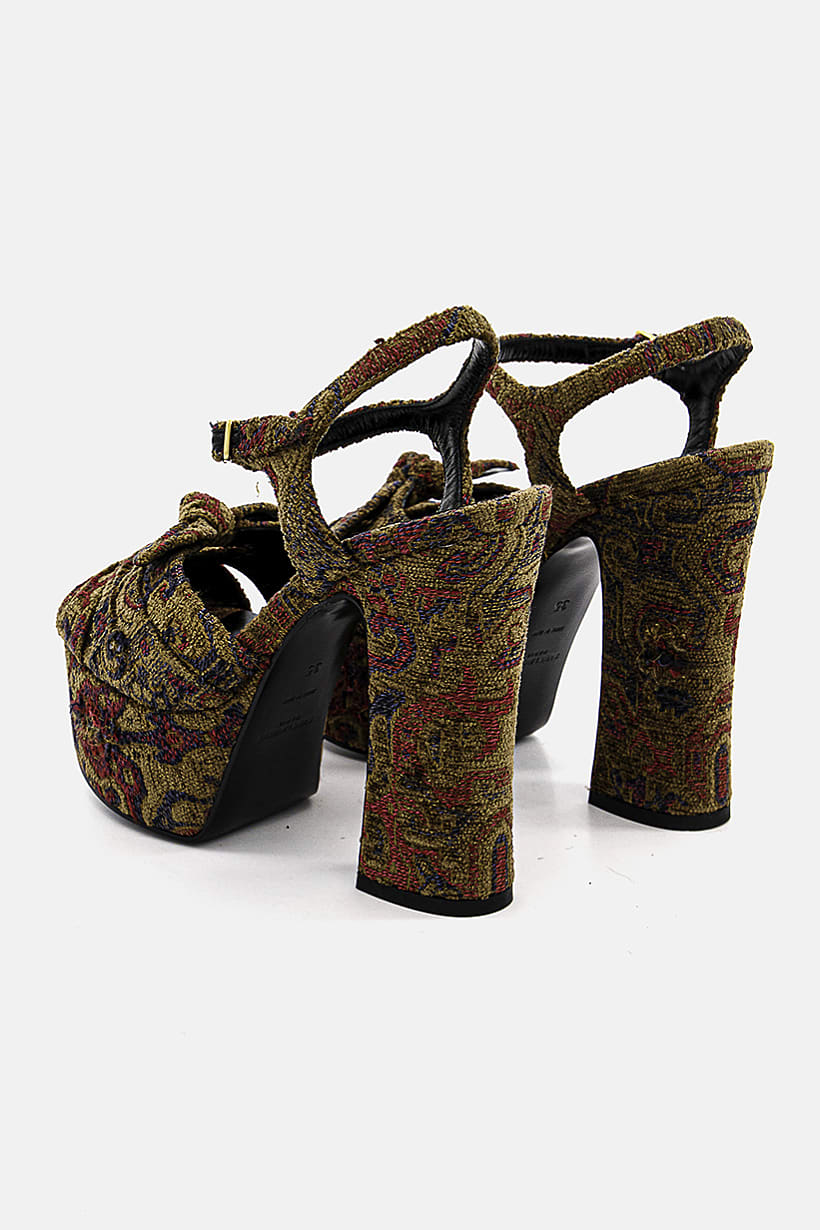 Heel Height : 5" / 12.7 cm, Heel Style : Block heel, Ideal For : Women, Insole Features : Leather insole, Shoe Closure : Adjustable buckle closure, Shoe Width : Standard, Sole Material : Synthetic sole, Toe Style : Open toe, Disclaimer : Product color may slightly vary due to photographic lighting sources or your monitor settings., Occasion : Casual, Pattern & Print : Aztec Print, Shoe Material : Textile, Color Family : Brown,