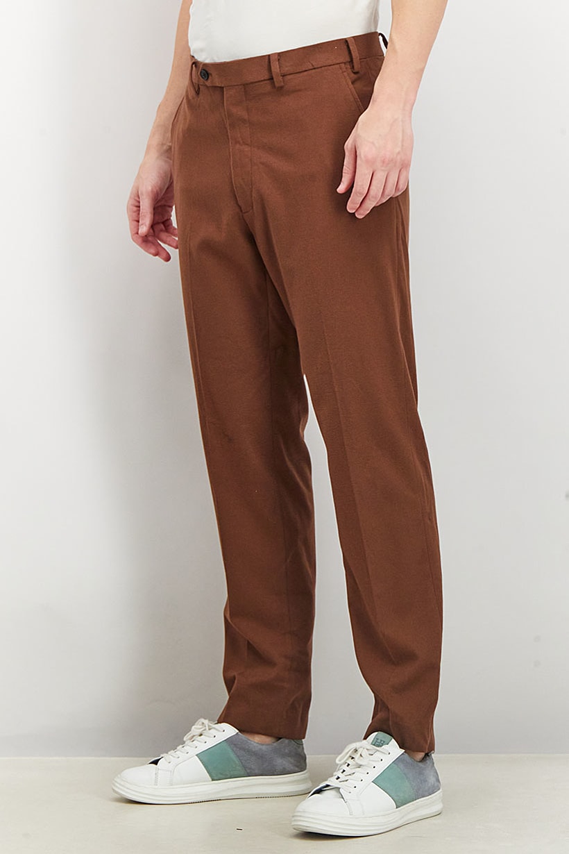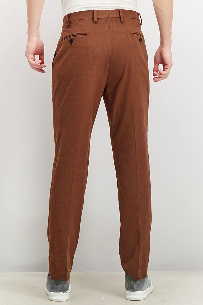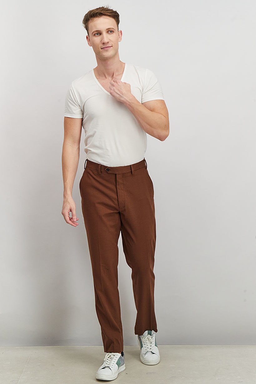 Care : Machine washable, Fit : Slim fit, No of pockets : 4, Pant Style : Chino, Size shown : Inches, Stretch Type : No stretch, Types of Jeans Rise : Mid rise, Bottom Closure : Button, Zipper fly, Bottom Style/Pattern : Belt loops, Disclaimer : Product color may slightly vary due to photographic lighting sources or your monitor settings., Fabrics : 100% Cotton, Occasion : Casual, Pattern & Print : Plain/Solid, Color Family : Brown,
