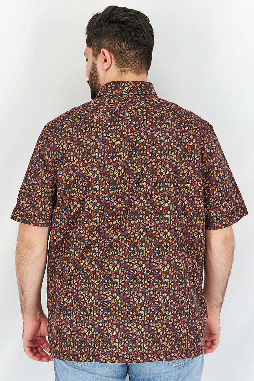 | nameOriginal | Men Regular Fit Pointed Collar Short Sleeve Floral Print Casual Shirt, Brown Combo |