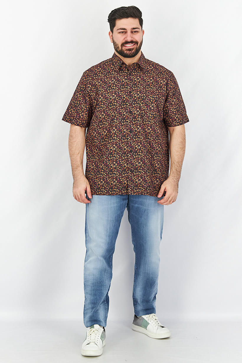 | sub_Categories | Men Clothing, Casual Shirts, men regular fit pointed collar short sleeve floral print casual shirt brown combo |