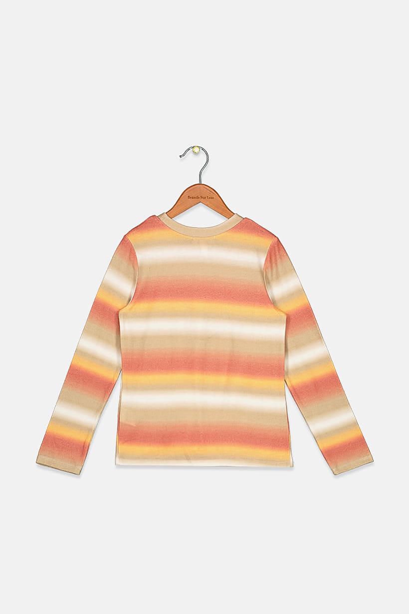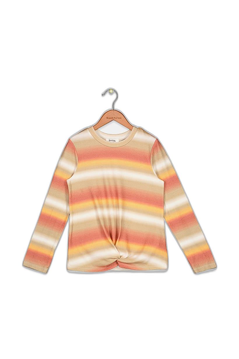 Brown Combo Striped Twist Front Top for Girls with Long Sleeves.