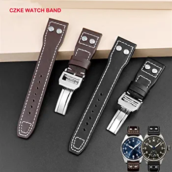 | nameOriginal | CNHKAU Genuine Leather Rivets Watchband For IWC Big Pilot Spitfire Cowhide Folding Buckle Watch Men Strap 21mm 22mm (Color : Brown silver clasp, Size : 21mm) |