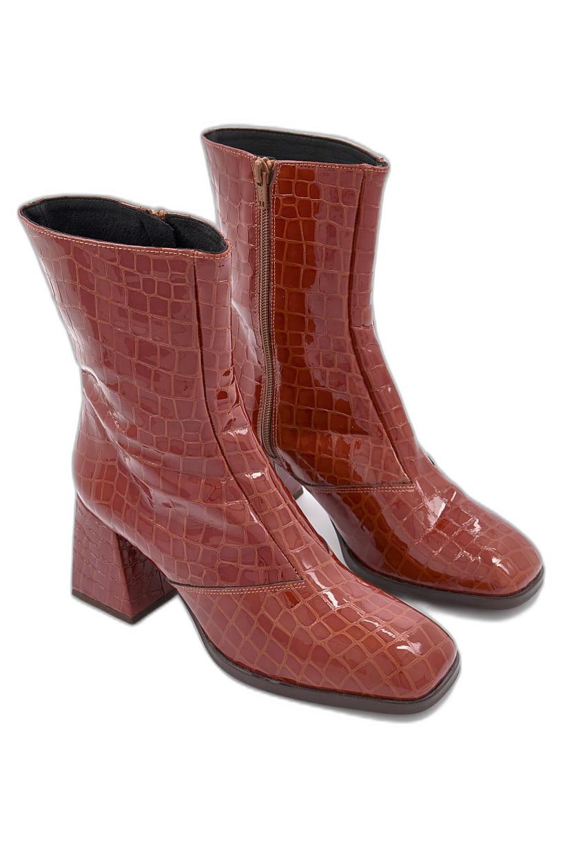 | sub_Categories | Shoes, Boots, women mistress crocodile skin block heel ankle boots brown |