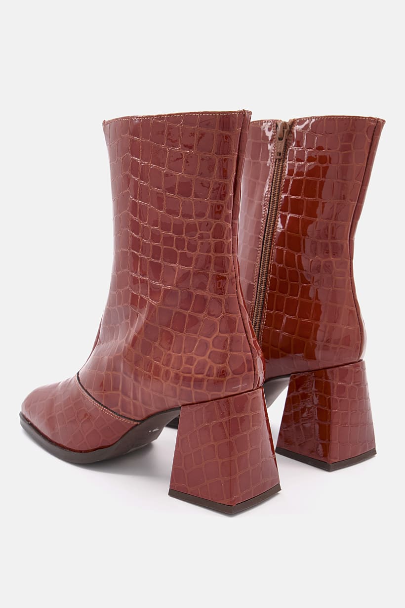 | descriptionOriginal | Heel Style : Block heel, Ideal For : Women, Shoe Closure : Zipper closure, Shoe Width : Standard, Sole Material : Synthetic sole, Style : Ankle Boot, Toe Style : Closed toe, Disclaimer : Product color may slightly vary due to photographic lighting sources or your monitor settings., Occasion : Casual, Pattern & Print : Textured pattern, Shoe Material : Synthetic Patent Leather, Color Family : Brown, |