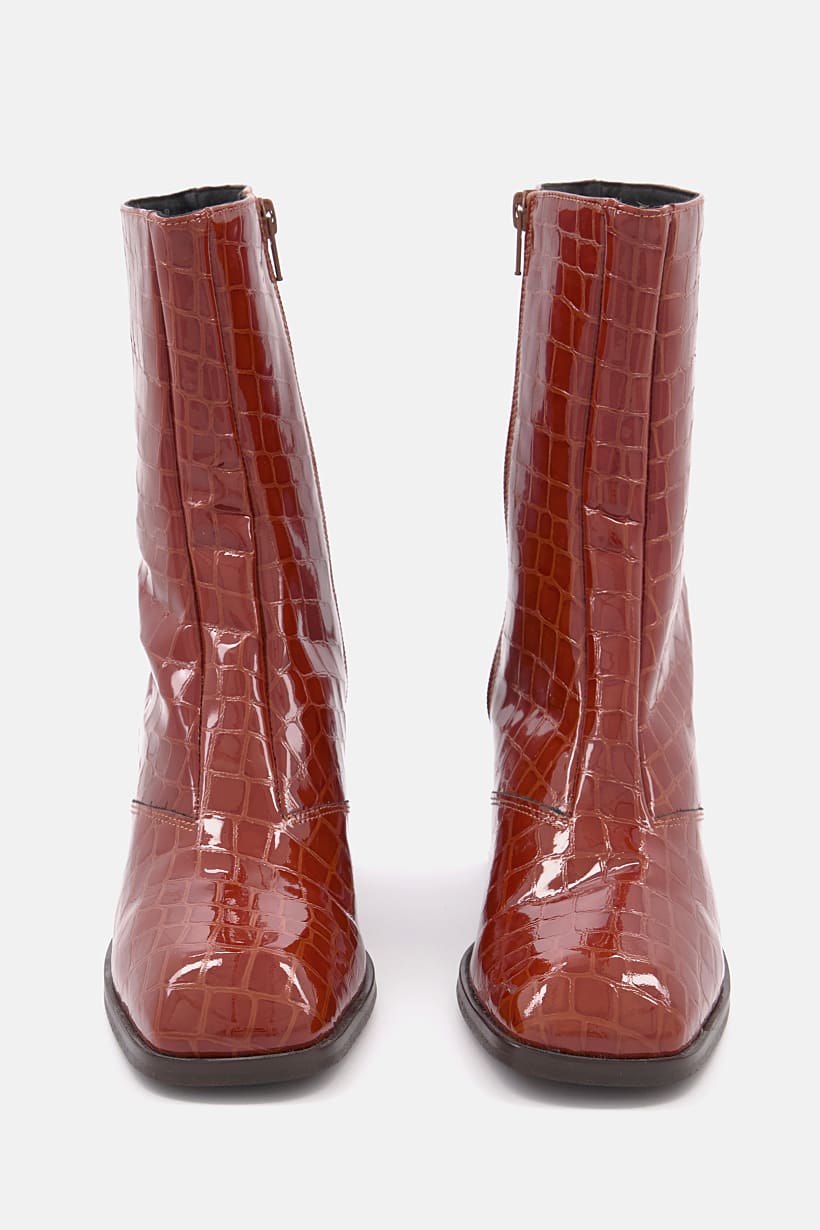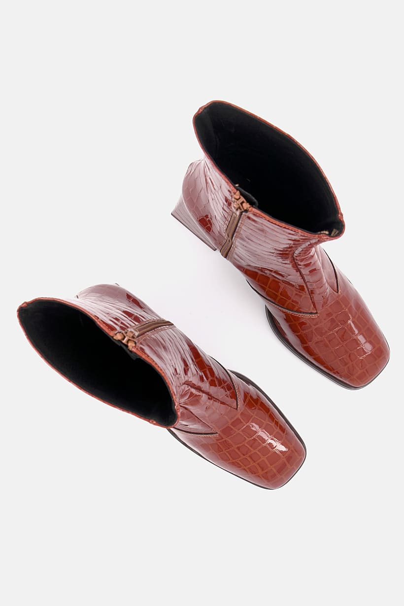 | nameOriginal | Women Mistress Crocodile Skin Block Heel Ankle Boots, Brown |