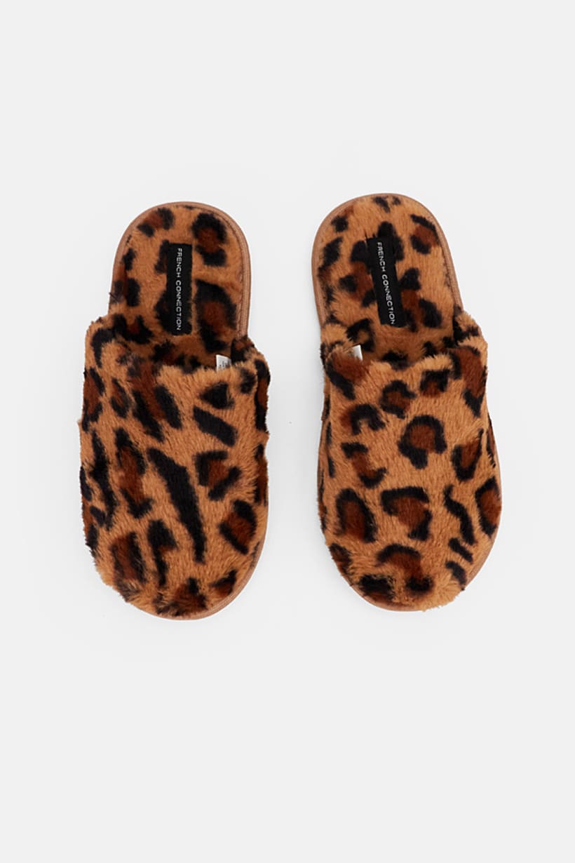 This product features a round toe design and a slip-on closure, making it an ideal choice for women who prefer a no-heel style. The synthetic sole provides durability, while the faux fur material adds a touch of comfort. Please note that the box is not included. This product is perfect for homewear and comes in a brown color family.
