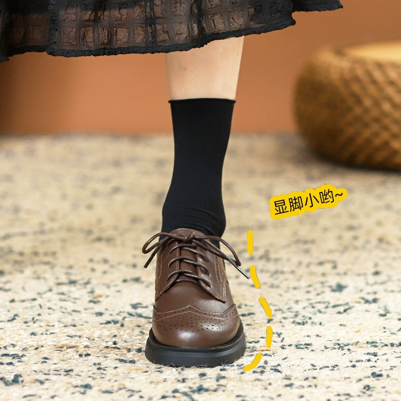 | nameOriginal | Brown genuine leather small leather shoes for women British style 2024 spring and autumn new style lace-up brogue shoes college flat jk shoes |