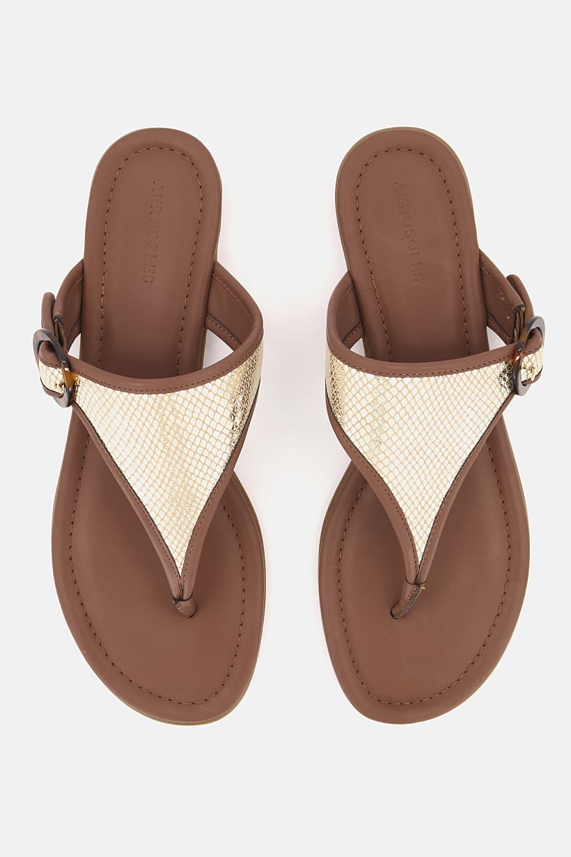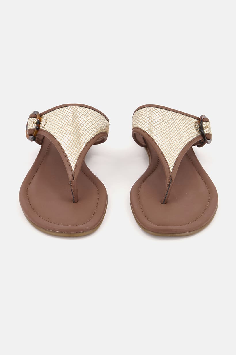 Brown/Gold Slip-On Thong Sandals for Women with Medium Clarity.