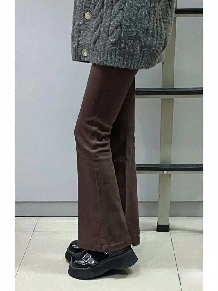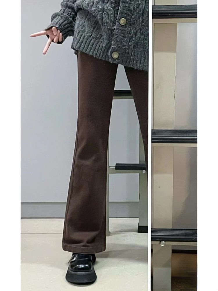 Brown High Waist Micro-flared Jeans Women's Early Spring plus size Slimming Stretch Covering Hip Straight Wide-leg Trendy Pants