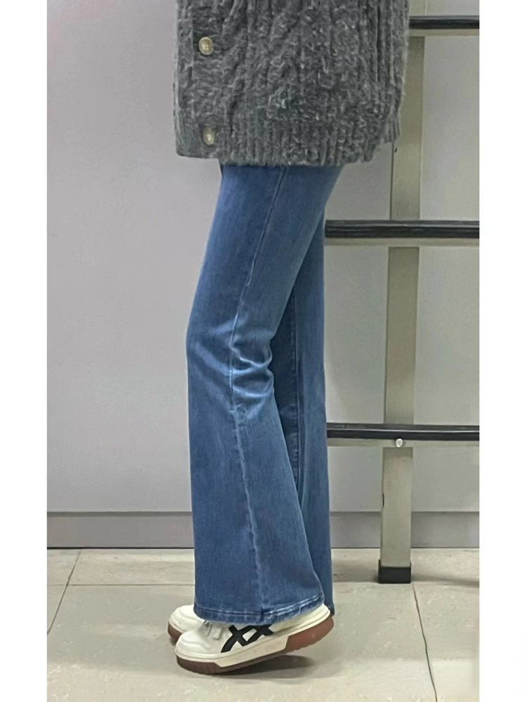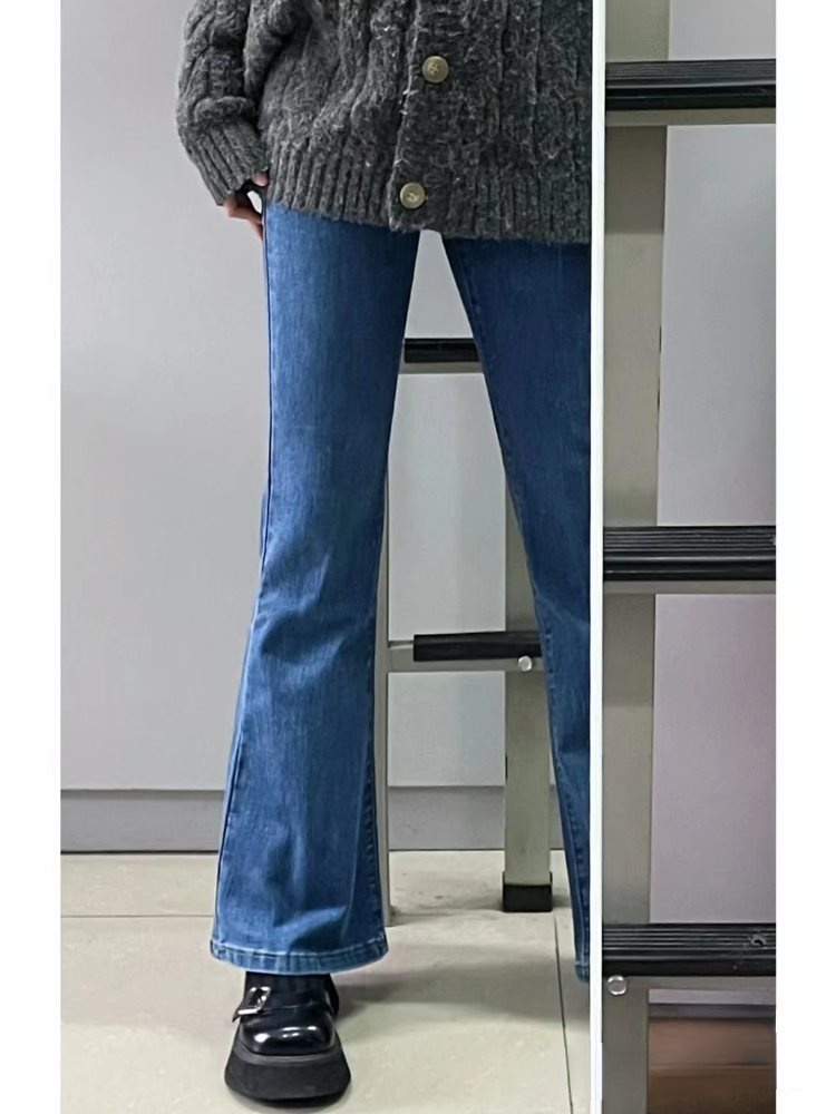 Brown High Waist Micro-flared Jeans Women’s Early Spring plus size Slimming Stretch Covering Hip Straight Wide-leg Trendy Pants