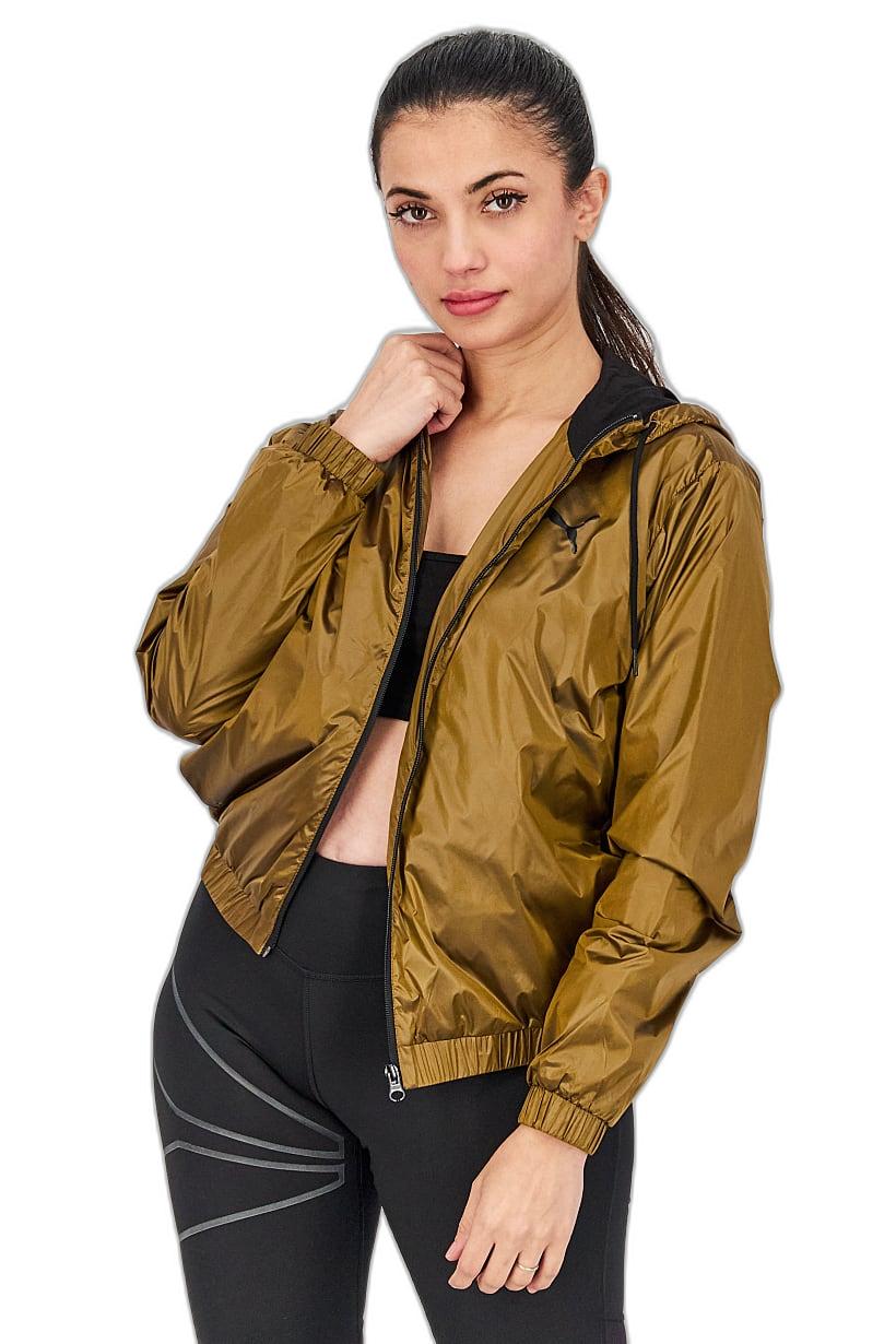 This product is easy to care for as it is machine washable. It has a sportswear fit and is available in US sizes. The jacket is lightweight and suitable for training. Please note that the product color may vary slightly due to lighting or monitor settings. It is made of 100% nylon and features the brand logo as a pattern and print. This jacket is perfect for sports occasions and falls under the sportswear category. The color family of this jacket is brown.