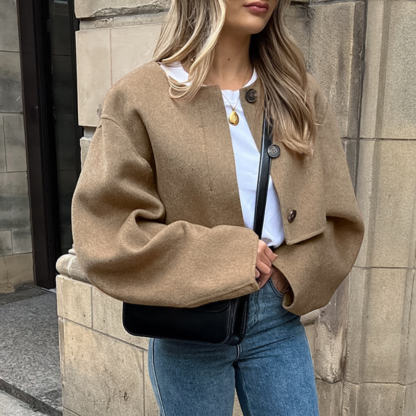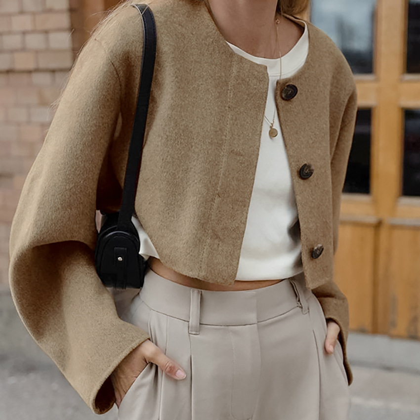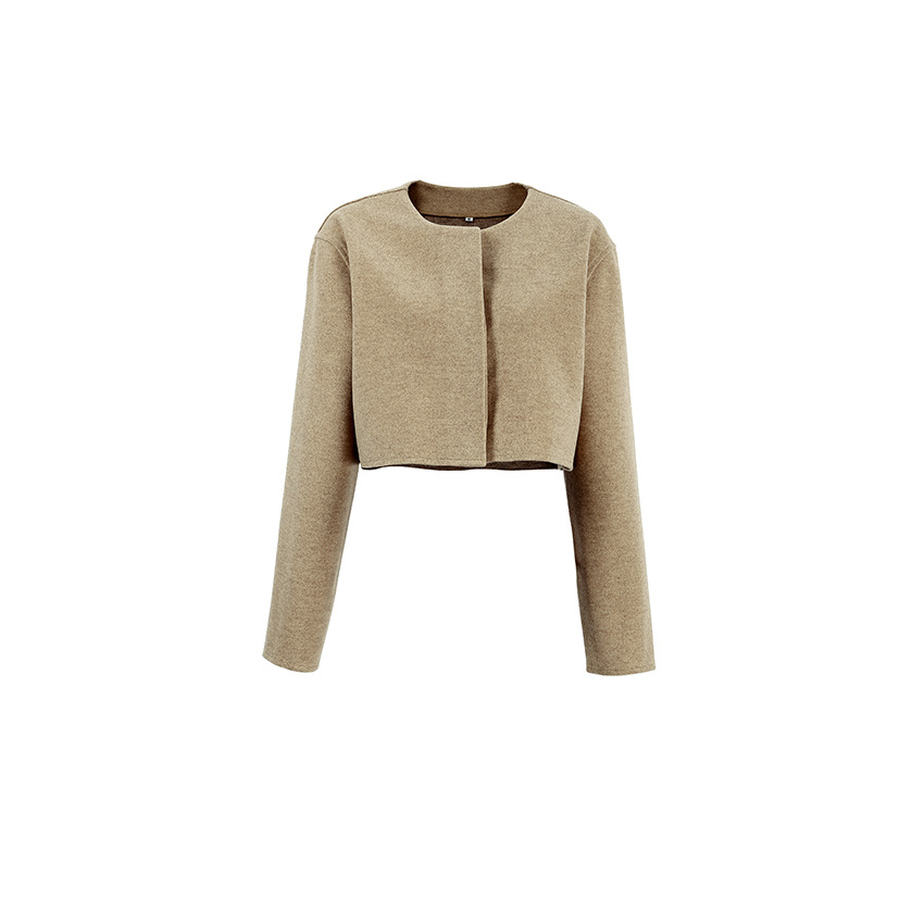 | nameOriginal | Brown lazy sense niche design Maillard style woolen coat 2023 European and American autumn and winter foreign trade women's short top |