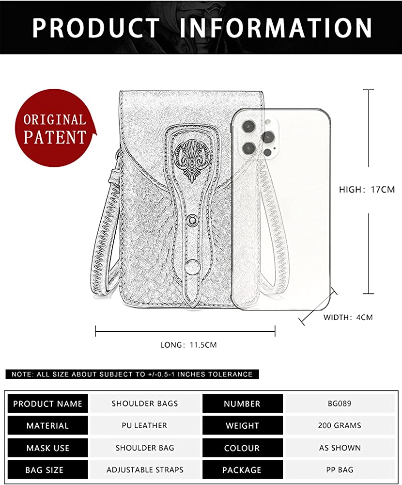 Introducing our Small Crossbody Bag Shoulder Purse, the perfect accessory for any occasion! Made from high-quality leather, this versatile bag can be worn as a belt pouch, waist bag, fanny pack, or shoulder purse. With its compact size, it’s the ideal phone holder for those on the go. The Medieval Vintage Festival Renaissance Punk Costume Travel Wallet design adds a touch of style to any outfit, making it perfect for festivals, concerts, or everyday use. The brown color (089) adds a classic touch to the bag, making it a timeless addition to your wardrobe. Whether you’re traveling or running errands, this bag is the perfect companion for all your adventures.