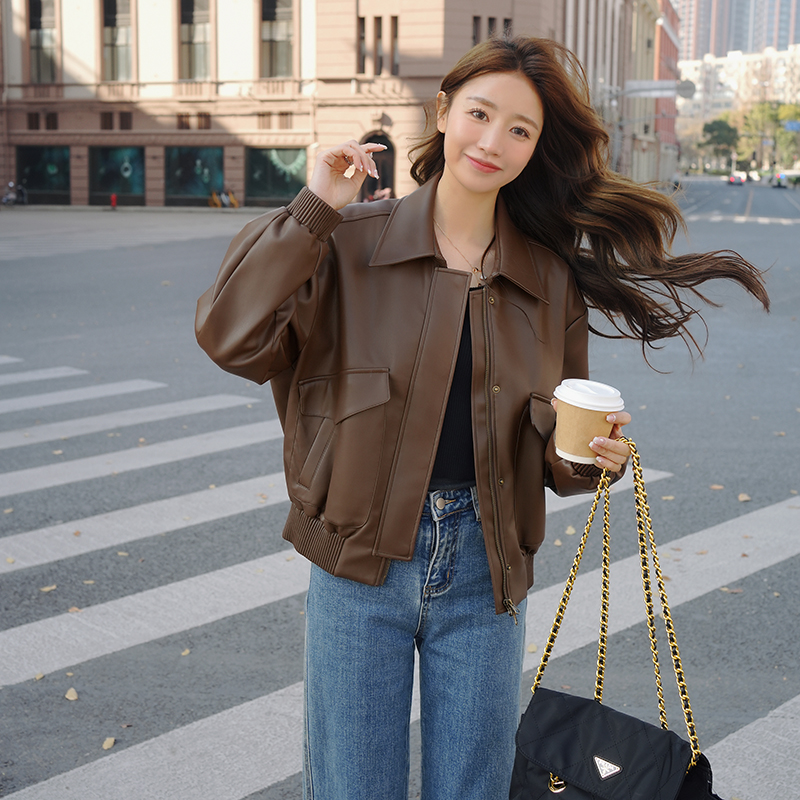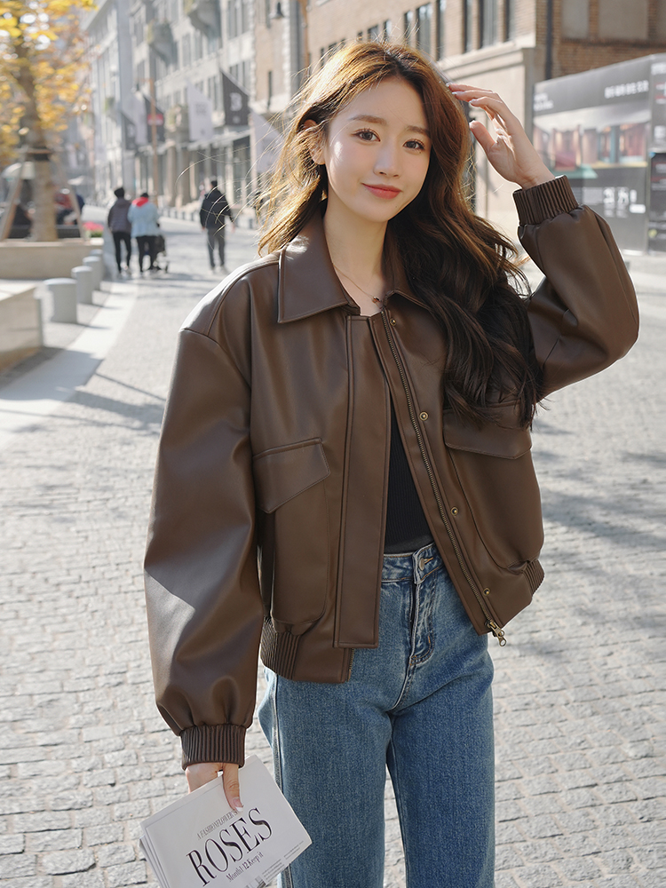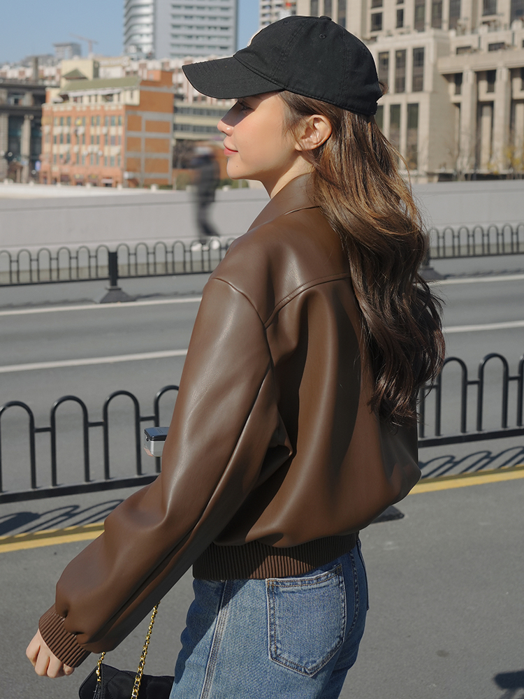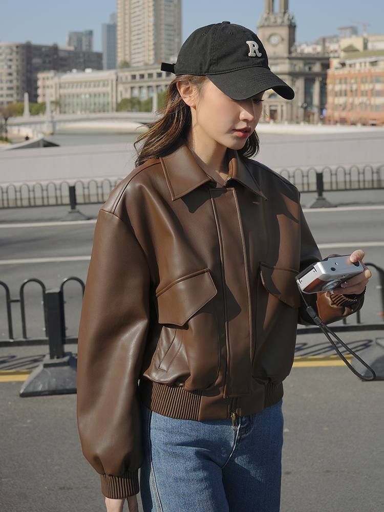 | nameOriginal | Brown Leather Jacket Short 2023 New Spring and Autumn Biker Suit American Retro PU Leather Jacket for Petite Women |