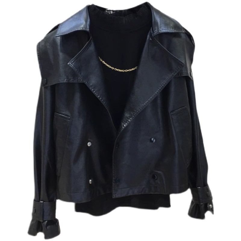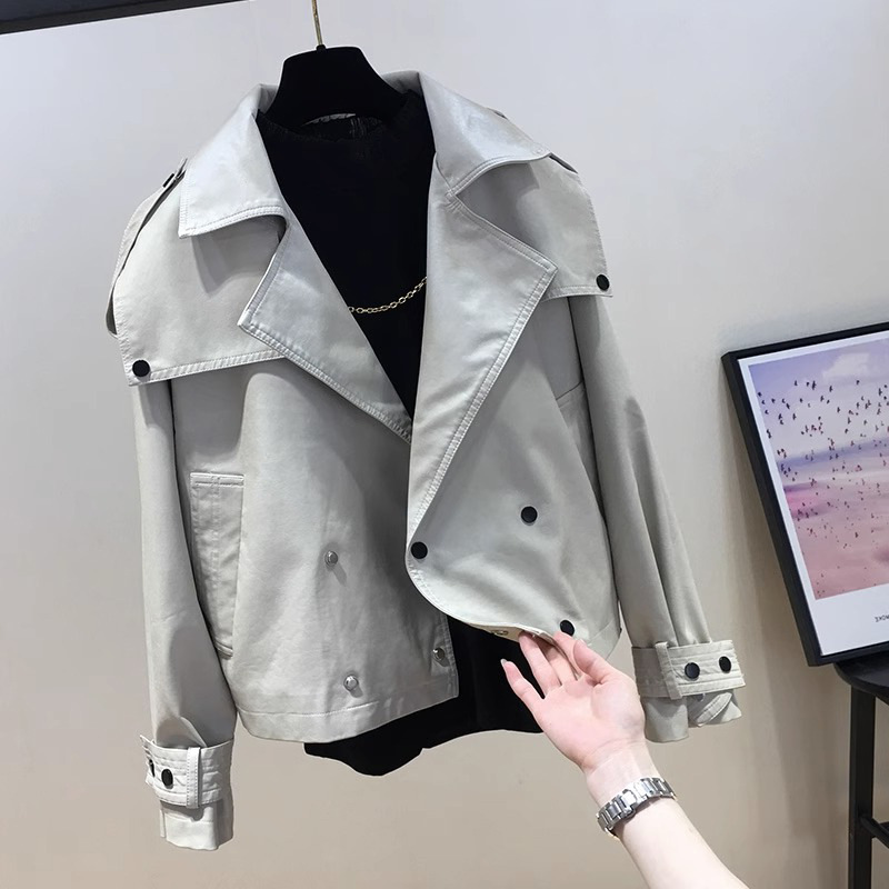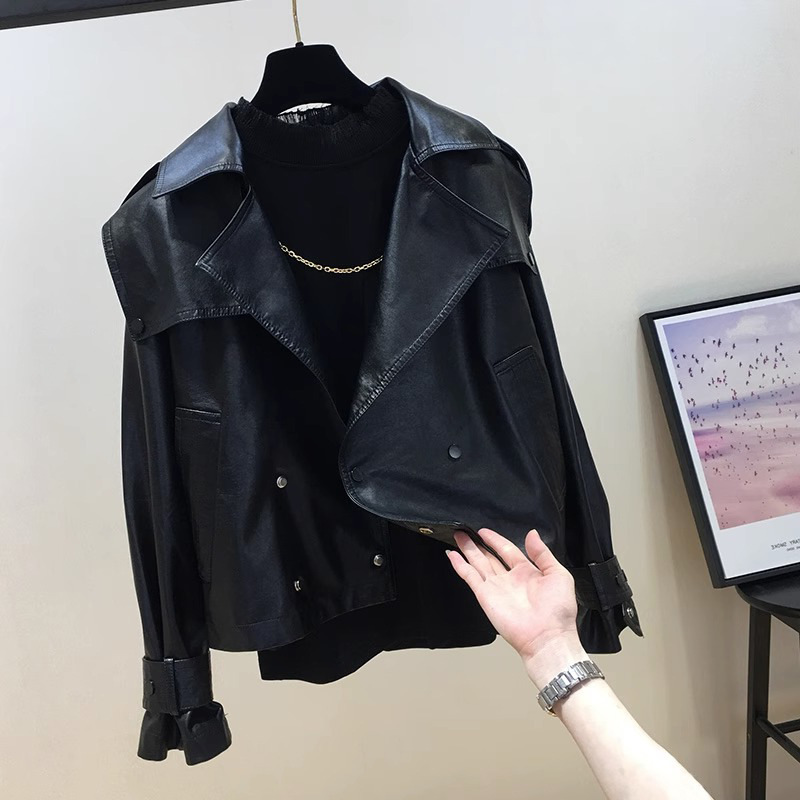 | nameOriginal | brown Leather Jacket Women's Spring and Autumn 2024 New Loose plus size Short Casual Motorcycle Leather Jacket |