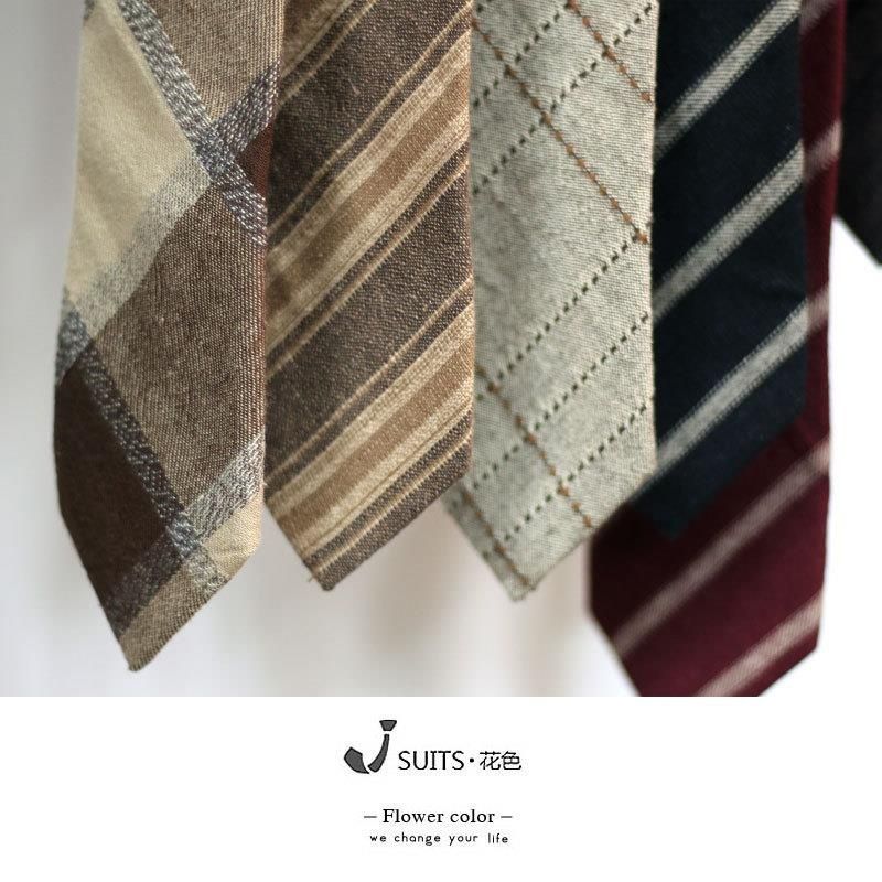 | nameOriginal | brown Linen Cotton Yellow Dark Red Black Matte Retro Casual British Japanese Style 7cm Niche Tie |